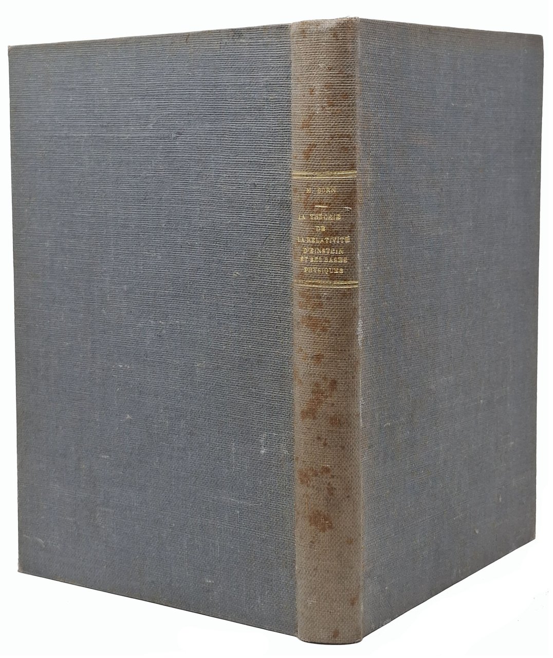 Formato: 16,5 x 25 cm circa. Prima edizione francese: 'traduit de l'allemand d'apres la seconde edition par F.-A. Finkelstein et J.-G. Verdier'. Pagine: XI, 339. Stato di conservazione: si segnalano esclusivamente macchioline di ruggine sul dorso della rilegatura ma, nel complesso, un esemplare molto buono. Privo di sottolineature, annotazioni, firme d'appartenenza, timbri o altri segni di penna o di matita. In lingua francese. Rilegatura rigida in tutta tela e titolo in oro sul dorso. La copertina anteriore originale è conservata all'interno della rilegatura. Max Born (1882 - 1970), fisico tedesco naturalizzato britannico, fu insignito del Nobel per la fisica nel 1954.