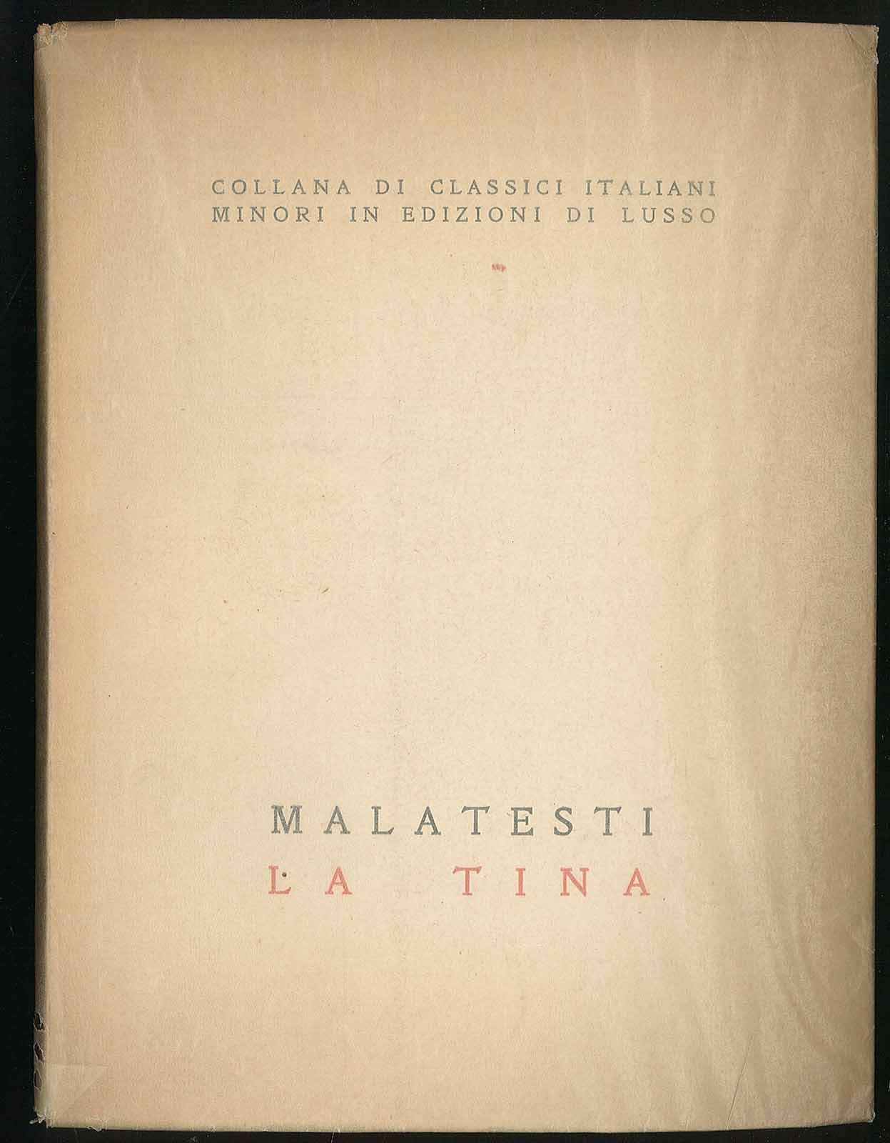 Il querciolo collana di classici italiani minori in edizioni di lusso. Esemplare n. 369/494. Esemplare non rifilato, ingiallito, con sovraccoperta traparente artigianale. Leggera usura da scaffale