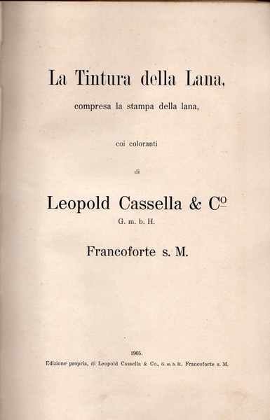 La tintura della lana, compresa la stampa della lana, coi coloranti di Leopold Cassella & Co G. m. b. H di Francoforte S. M.