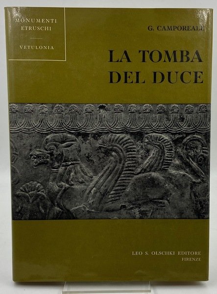 Tela c/sovraccoperta, cm23.5x31.5, pp 179 (3); 9 + e XLII tavole in nero. Monumenti Etruschi pubblicati dall'Istituto di Studi Etruschi ed Italici #1.
