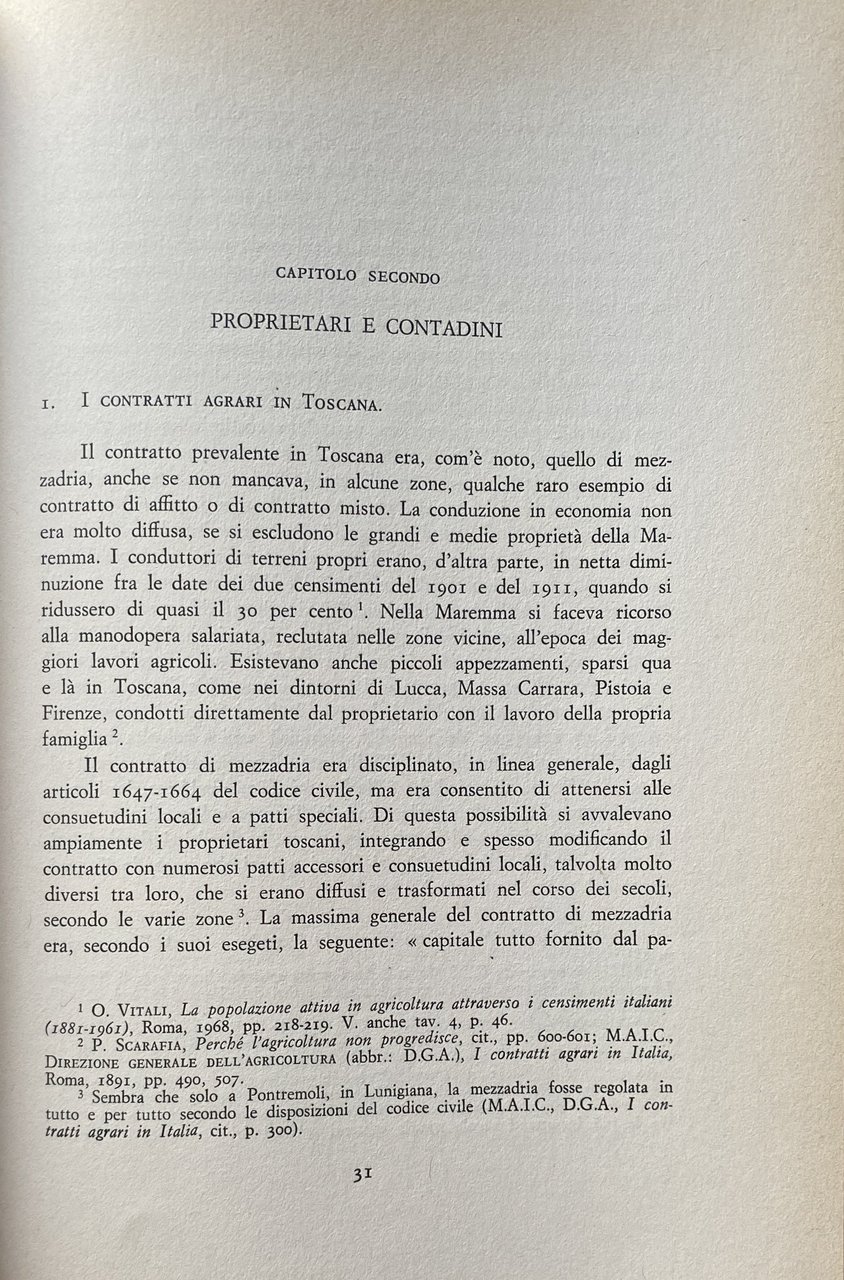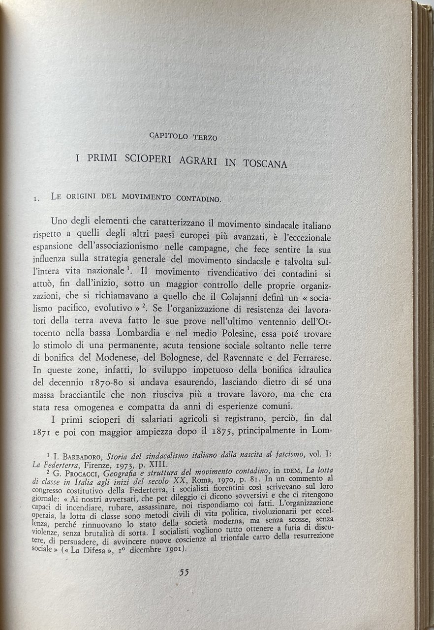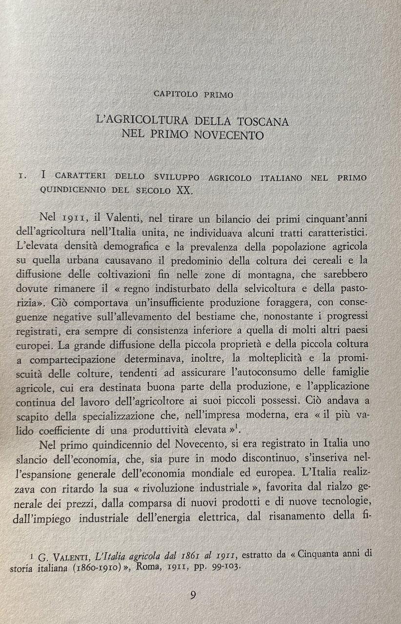 Soggetti: Storia economica moderna, Toscana, Contadini, proprietari terrieri, Agitazioni, Rivolte contadine, Lotta di classe, Politica, Diritti sociali, Sciopero, Età giolittiana, mezzadria, Terra, Allevamenti, Agricoltura, Riforma agraria, Movimenti, Contratti, Condizioni, Bestiame, Pastorizia, Socialismo, Pagamento, Salario, Braccianti, Coltivatori, Grano, Coloni, Campagne, Novecento, Sindacalismo, Sindacati, Emigrazione rurale, Crisi, Biennio nero, Liberalismo, Privilegi, Carlo M. Cipolla, Sistema feudale, Belle époque, Prezzi, Mercato, Consumo, Concimi chimici, Macchine agricole, Progresso, Lavoratori, Bonifica, Capitalismo, Sfruttamento, Prodotti, Governo Giolitti, Leghe rosse, Rivoluzione, Comunismo, Fascismo, Patto colonico, Rotazioni, Colture, Esproprio, Paolo Guicciardini, Marchese Peruzzi de' Medici, Nobiltà, Nobili, Leggi, Acerbo, Gioacchino Bastogi, Barbadoro, L. Bissolati, Antonio Gramsci, Oreste Bordiga, Giorgio Candeloro, contessa Cambray-Digny, Associazioni, Confederazioni, P. Ferrari, Elezioni, Parlamento, Fasci, Latifondo, L. Magini, Ernesto Ragionieri, Giuliano Procacci, Movimento operaio, Fabbriche, Pasquale Villari, R. Zangheri, Sidney Sonnino, C. Signorini, Stefano Jacini, Antonio Labriola, Consenso, Dissenso, Emilio Sereni, Partito comunista, Biennio rosso, Burocrazia, Potere, Accentramento, Massa, Populismo, Ancien régime, Parassitismo, Corporazioni, Protezionismo, Mario Toscano, Benito Mussolini, Squadrismo, Vitelleschi, R. Lambruschini, Giorgio Mori, Politica agricola Atti Aumento Capitale Censimento Classe Collina Coltura Congresso Contratti agrari Contratto Cooperative Difesa Ettari Famiglia colonica Fiorentino Firenze Giornali Italia Lega Leghe Lire Lotte Maggio Mezzeria Miglioramenti Nazionale Nazione Organizzazioni Pianura Piccola Pisa Podere Popolazione Produzione Proprietà Provincia Questione Quintali Regione Rendita Richieste Salario Scioperanti Scritti Sistemi Socialisti Società Statistica Studio Sviluppo Tenuta Terreno Val di Chiana Georgofili, Carlo Pazzagli, Luciano Radi, C. de Rocquigny, Donato Sanminiatelli, Scaraffia, Maremma, Grosseto, Pier Francesco Serragli, Antonio Vacirca, Carlo Pinzani, O. Tobler, Carlo Ridolfi, Luigi Luzzatti, Francesco Ciccotti, Ivanoe Bonomi, Riformismo, Miglioramenti, Libri rari Vintage fuori catalogo, Novecento, Comizi, De Johannis, Icilio Bandini, Vino, Dazi, Pane, Cereali, Manodopera, Arretratezza, Frumento, Olio, Uliveti, Vite, Lucca, Siena, Pisa, Pistoia, Livorno, Filossera, Riposo Valdarno, Bovini, Ovini, Chianina, Suini, Mutuo Soccorso, Indebitamento, Problemi, Polemiche, l'Avanti, Federterra, Emilia Romagna, Società mutue, Chianciano, Vignaioli, Avventizi, Collezionismo, Ferrovie Fondiaria, Assicurazioni Generali, Irrigazione, Tasse, Imposte, Inchieste parlamentari Caseifici Enfiteusi Credito fondiario Cavalli Latte Commercio Spese Economia Modern economic history Tuscany Landowners Unrest Peasant revolts Class struggle Politics Social rights Strike Giolittian age Sharecropping Land Agriculture Agrarian reform Movements Contracts Conditions Livestock Pastoralism Socialism Payment Salar Laborers Farmer Grain Settlers Campaigns Twentieth century Trade unionism Rural emigration Crisis Black Liberalism Privileges Feudal system Prices Market Consumption Chemical fertilizers Agricultural machinery Progress Workers Reclamation Capitalism Exploitation Products Government Red Leagues Revolution Communism Colonial Pact Rotations Crops Expropriation Nobility Nobles Laws Associations Confederations Elections Parliament Latifund Movement worker Factories Consensus Dissent Communist Party Red biennium Bureaucracy Power Centralization Populism Parasitism Corporations Protectionism Agricultural policy Acts Capital Increase Census Class Hill Crop Congress Contracts Defense Cooperative Contract Hectares Farmhouse family Florence Newspaper Italy Leagues Struggles Centerline Improvements National Organizations Plain Small Farm Population Production Property Province Issue Quintals Region Income Requests Wages Strikers Writings Socialist Systems Society Expenses Statistics Study Development Estate Land Reformism Improvements Rare books out of print Twentieth century Laborers Rallies Bread Cereals Labor Backwardness Wheat Oil Olive Groves Philoxera Rest Cattle Sheep Pigs Mutual Aid Indebtedness Problems Controversy Mutual Societies Winemakers Adventitious Collectibles Fondiaria Railways General Insurance Irrigation Taxes Duties Parliamentary Inquiries Dairies Emphyteusis Credit Horses Milk Trade Expenses