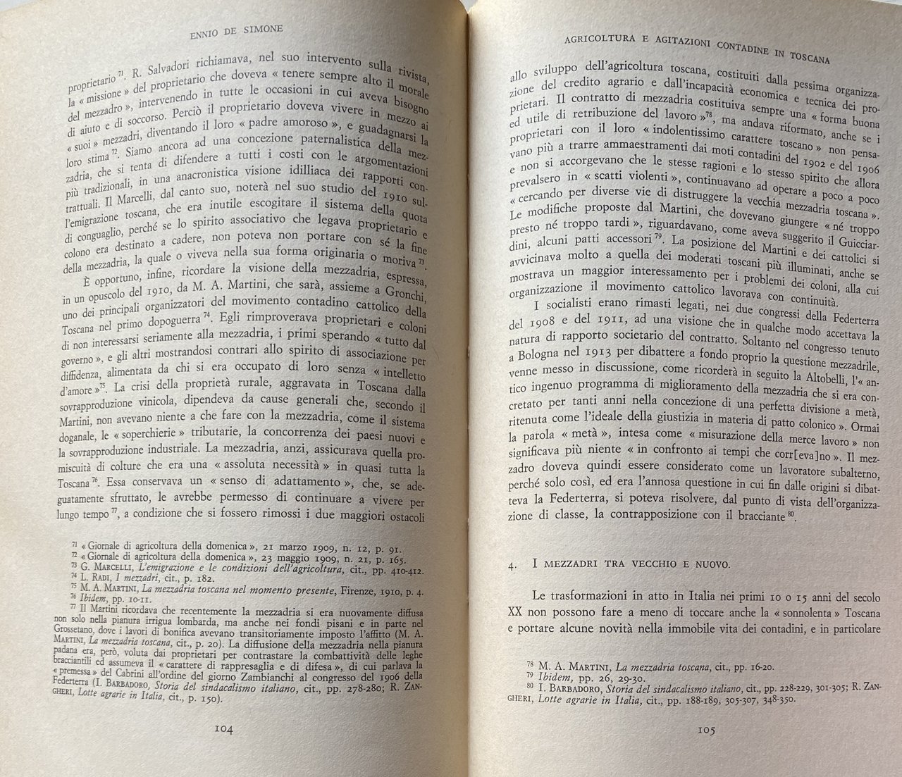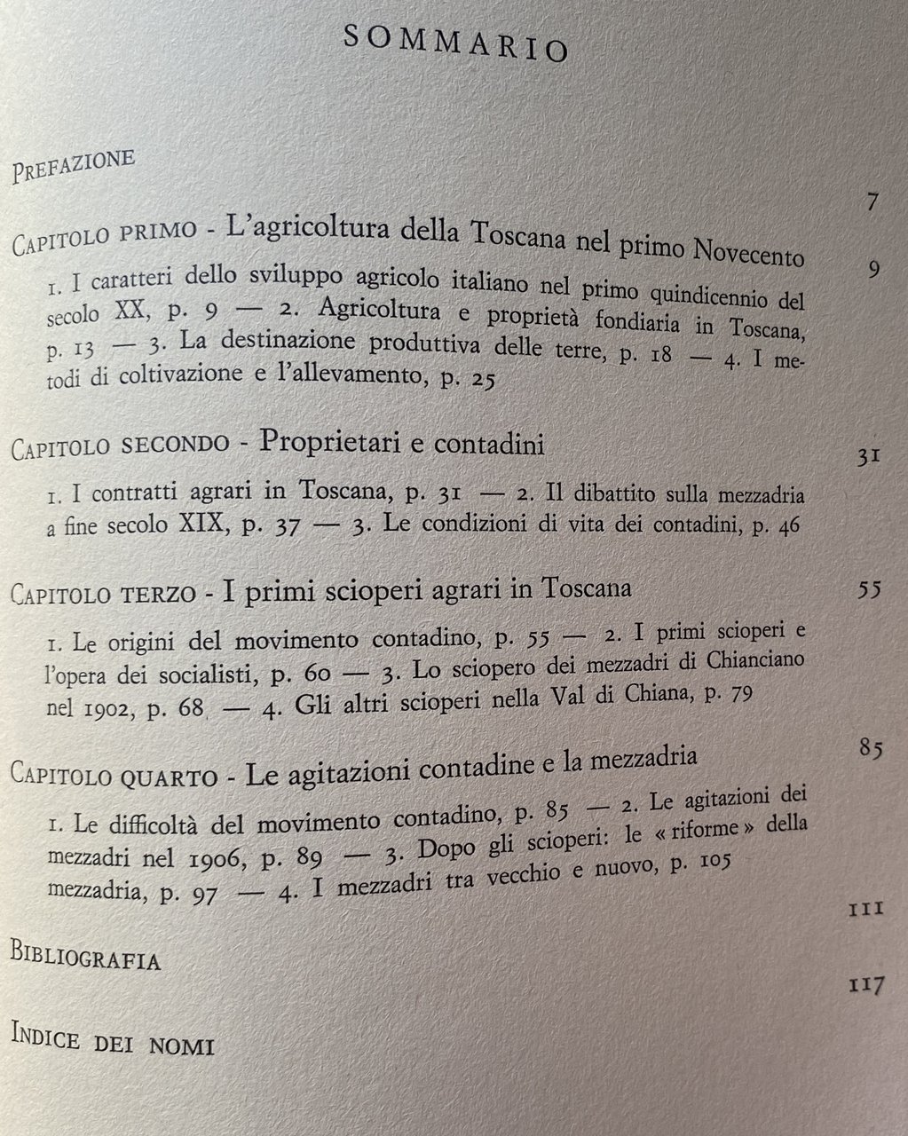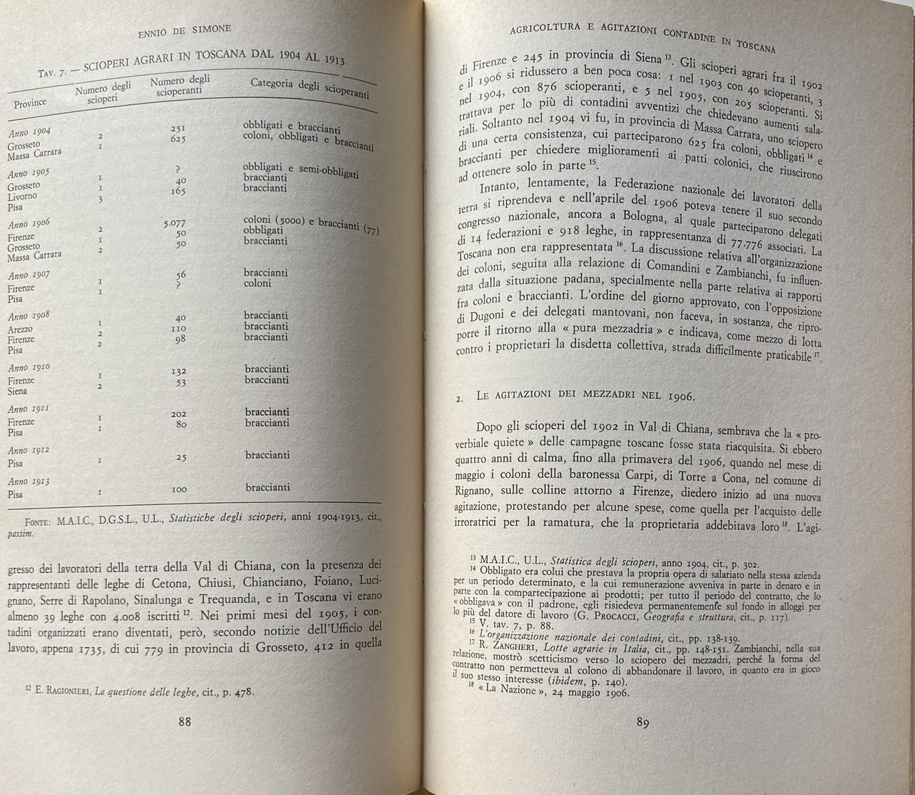 Soggetti: Storia economica moderna, Toscana, Contadini, proprietari terrieri, Agitazioni, Rivolte contadine, Lotta di classe, Politica, Diritti sociali, Sciopero, Età giolittiana, mezzadria, Terra, Allevamenti, Agricoltura, Riforma agraria, Movimenti, Contratti, Condizioni, Bestiame, Pastorizia, Socialismo, Pagamento, Salario, Braccianti, Coltivatori, Grano, Coloni, Campagne, Novecento, Sindacalismo, Sindacati, Emigrazione rurale, Crisi, Biennio nero, Liberalismo, Privilegi, Carlo M. Cipolla, Sistema feudale, Belle époque, Prezzi, Mercato, Consumo, Concimi chimici, Macchine agricole, Progresso, Lavoratori, Bonifica, Capitalismo, Sfruttamento, Prodotti, Governo Giolitti, Leghe rosse, Rivoluzione, Comunismo, Fascismo, Patto colonico, Rotazioni, Colture, Esproprio, Paolo Guicciardini, Marchese Peruzzi de' Medici, Nobiltà, Nobili, Leggi, Acerbo, Gioacchino Bastogi, Barbadoro, L. Bissolati, Antonio Gramsci, Oreste Bordiga, Giorgio Candeloro, contessa Cambray-Digny, Associazioni, Confederazioni, P. Ferrari, Elezioni, Parlamento, Fasci, Latifondo, L. Magini, Ernesto Ragionieri, Giuliano Procacci, Movimento operaio, Fabbriche, Pasquale Villari, R. Zangheri, Sidney Sonnino, C. Signorini, Stefano Jacini, Antonio Labriola, Consenso, Dissenso, Emilio Sereni, Partito comunista, Biennio rosso, Burocrazia, Potere, Accentramento, Massa, Populismo, Ancien régime, Parassitismo, Corporazioni, Protezionismo, Mario Toscano, Benito Mussolini, Squadrismo, Vitelleschi, R. Lambruschini, Giorgio Mori, Politica agricola Atti Aumento Capitale Censimento Classe Collina Coltura Congresso Contratti agrari Contratto Cooperative Difesa Ettari Famiglia colonica Fiorentino Firenze Giornali Italia Lega Leghe Lire Lotte Maggio Mezzeria Miglioramenti Nazionale Nazione Organizzazioni Pianura Piccola Pisa Podere Popolazione Produzione Proprietà Provincia Questione Quintali Regione Rendita Richieste Salario Scioperanti Scritti Sistemi Socialisti Società Statistica Studio Sviluppo Tenuta Terreno Val di Chiana Georgofili, Carlo Pazzagli, Luciano Radi, C. de Rocquigny, Donato Sanminiatelli, Scaraffia, Maremma, Grosseto, Pier Francesco Serragli, Antonio Vacirca, Carlo Pinzani, O. Tobler, Carlo Ridolfi, Luigi Luzzatti, Francesco Ciccotti, Ivanoe Bonomi, Riformismo, Miglioramenti, Libri rari Vintage fuori catalogo, Novecento, Comizi, De Johannis, Icilio Bandini, Vino, Dazi, Pane, Cereali, Manodopera, Arretratezza, Frumento, Olio, Uliveti, Vite, Lucca, Siena, Pisa, Pistoia, Livorno, Filossera, Riposo Valdarno, Bovini, Ovini, Chianina, Suini, Mutuo Soccorso, Indebitamento, Problemi, Polemiche, l'Avanti, Federterra, Emilia Romagna, Società mutue, Chianciano, Vignaioli, Avventizi, Collezionismo, Ferrovie Fondiaria, Assicurazioni Generali, Irrigazione, Tasse, Imposte, Inchieste parlamentari Caseifici Enfiteusi Credito fondiario Cavalli Latte Commercio Spese Economia Modern economic history Tuscany Landowners Unrest Peasant revolts Class struggle Politics Social rights Strike Giolittian age Sharecropping Land Agriculture Agrarian reform Movements Contracts Conditions Livestock Pastoralism Socialism Payment Salar Laborers Farmer Grain Settlers Campaigns Twentieth century Trade unionism Rural emigration Crisis Black Liberalism Privileges Feudal system Prices Market Consumption Chemical fertilizers Agricultural machinery Progress Workers Reclamation Capitalism Exploitation Products Government Red Leagues Revolution Communism Colonial Pact Rotations Crops Expropriation Nobility Nobles Laws Associations Confederations Elections Parliament Latifund Movement worker Factories Consensus Dissent Communist Party Red biennium Bureaucracy Power Centralization Populism Parasitism Corporations Protectionism Agricultural policy Acts Capital Increase Census Class Hill Crop Congress Contracts Defense Cooperative Contract Hectares Farmhouse family Florence Newspaper Italy Leagues Struggles Centerline Improvements National Organizations Plain Small Farm Population Production Property Province Issue Quintals Region Income Requests Wages Strikers Writings Socialist Systems Society Expenses Statistics Study Development Estate Land Reformism Improvements Rare books out of print Twentieth century Laborers Rallies Bread Cereals Labor Backwardness Wheat Oil Olive Groves Philoxera Rest Cattle Sheep Pigs Mutual Aid Indebtedness Problems Controversy Mutual Societies Winemakers Adventitious Collectibles Fondiaria Railways General Insurance Irrigation Taxes Duties Parliamentary Inquiries Dairies Emphyteusis Credit Horses Milk Trade Expenses
