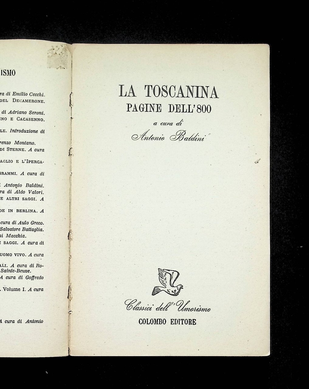 La Toscanina Pagine dell'800 Libro Antonio Baldini Colombo 1946 Umorismo