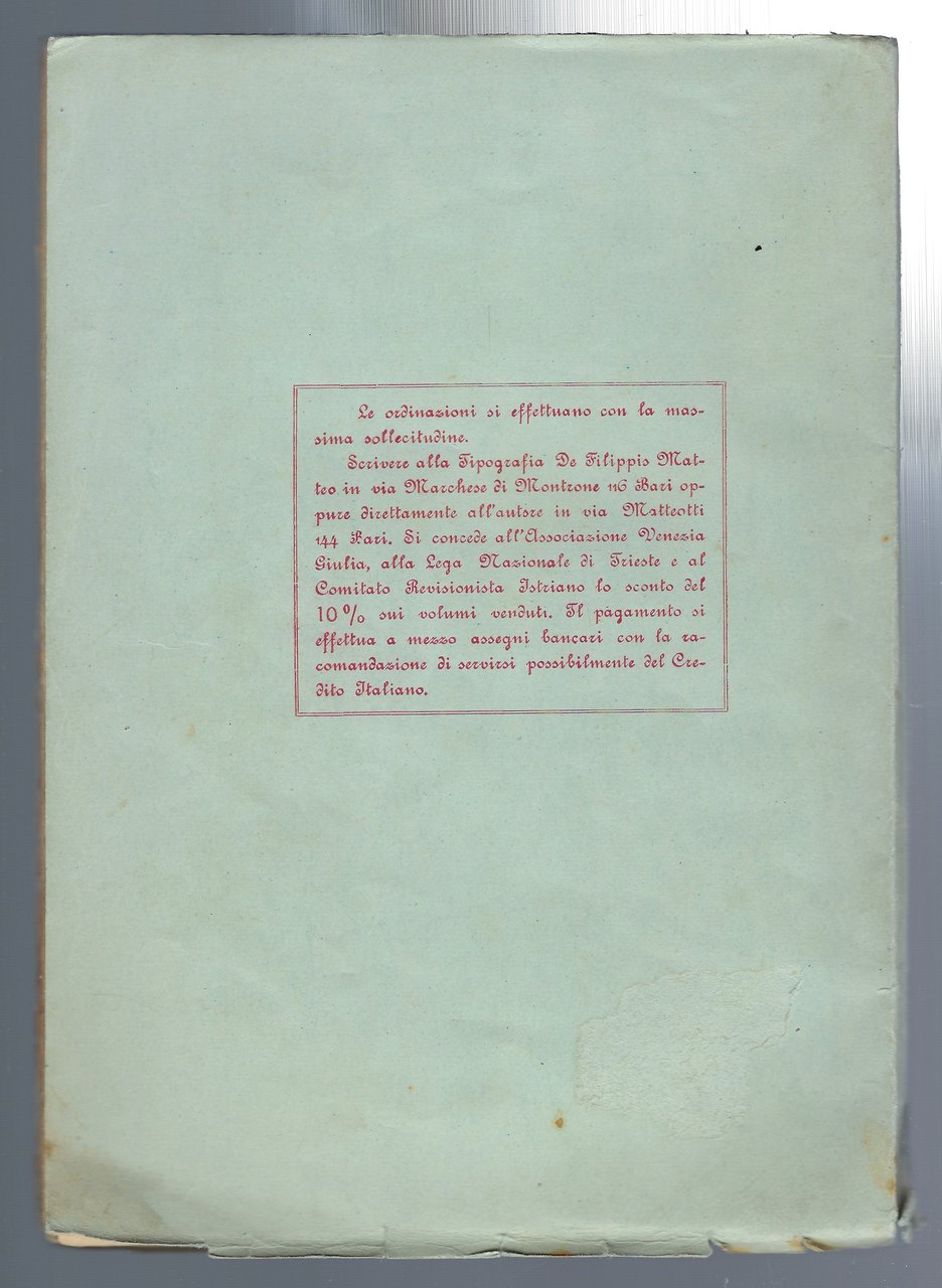 Contiene numerose illustrazioni in nero n.t. ed un quadro storico dei Contributi alla civiltà della Dalmazia - Carnaro - Venezia Giulia nei secoli f.t.
