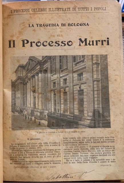 LA TRAGEDIA DI BOLOGNA: IL PROCESSO MURRI. I PROCESSI CELEBRI ILLUSTRATI DI TUTTI I POPOLI.