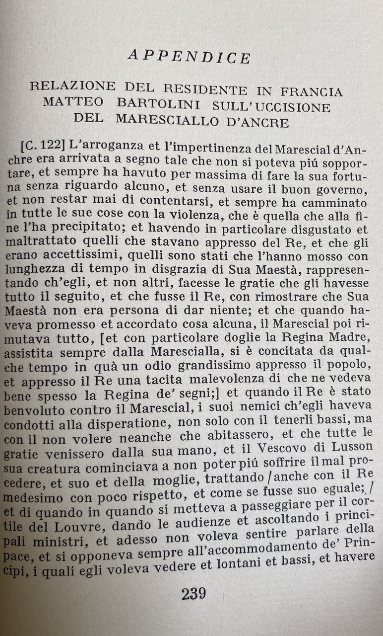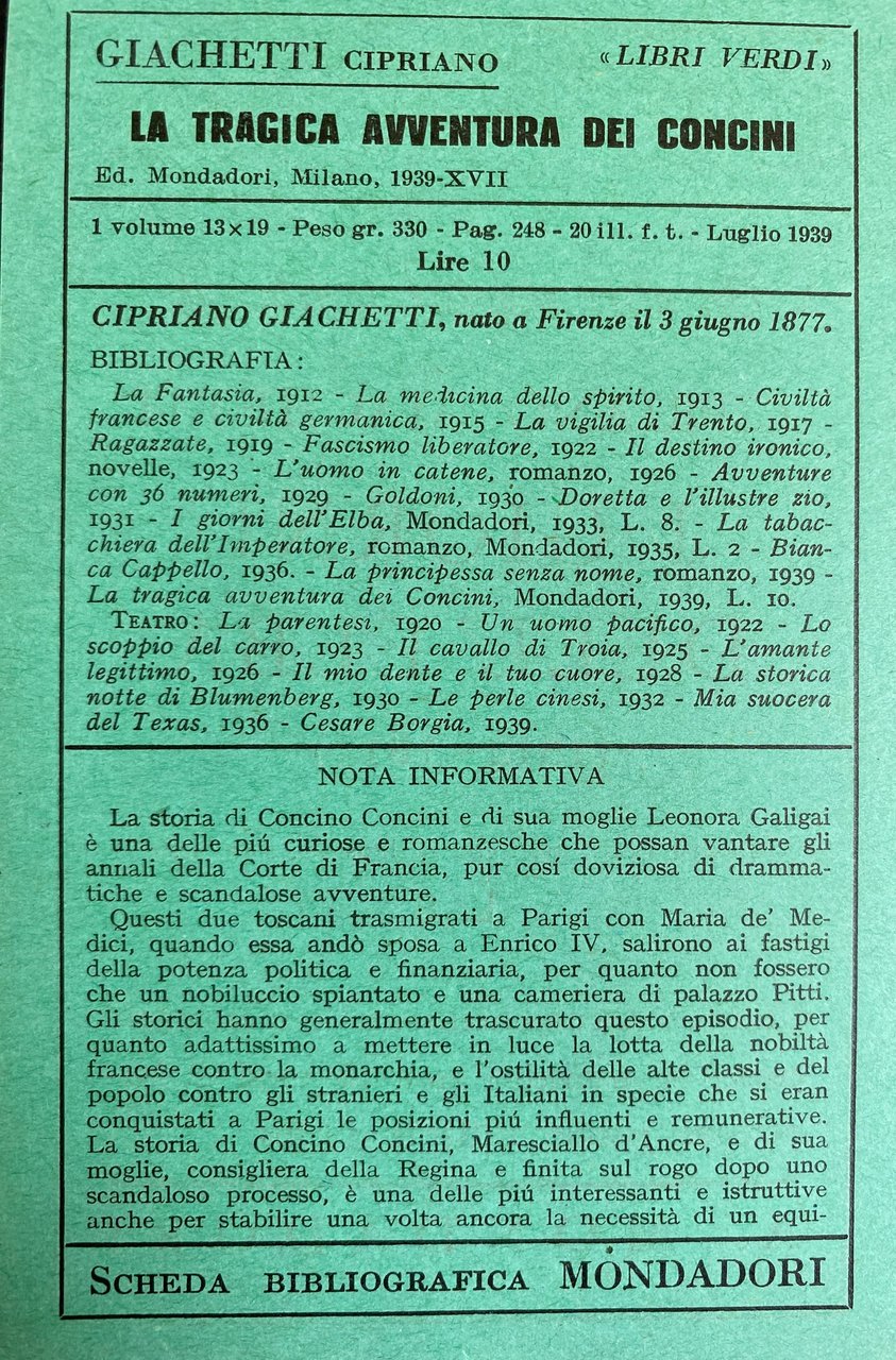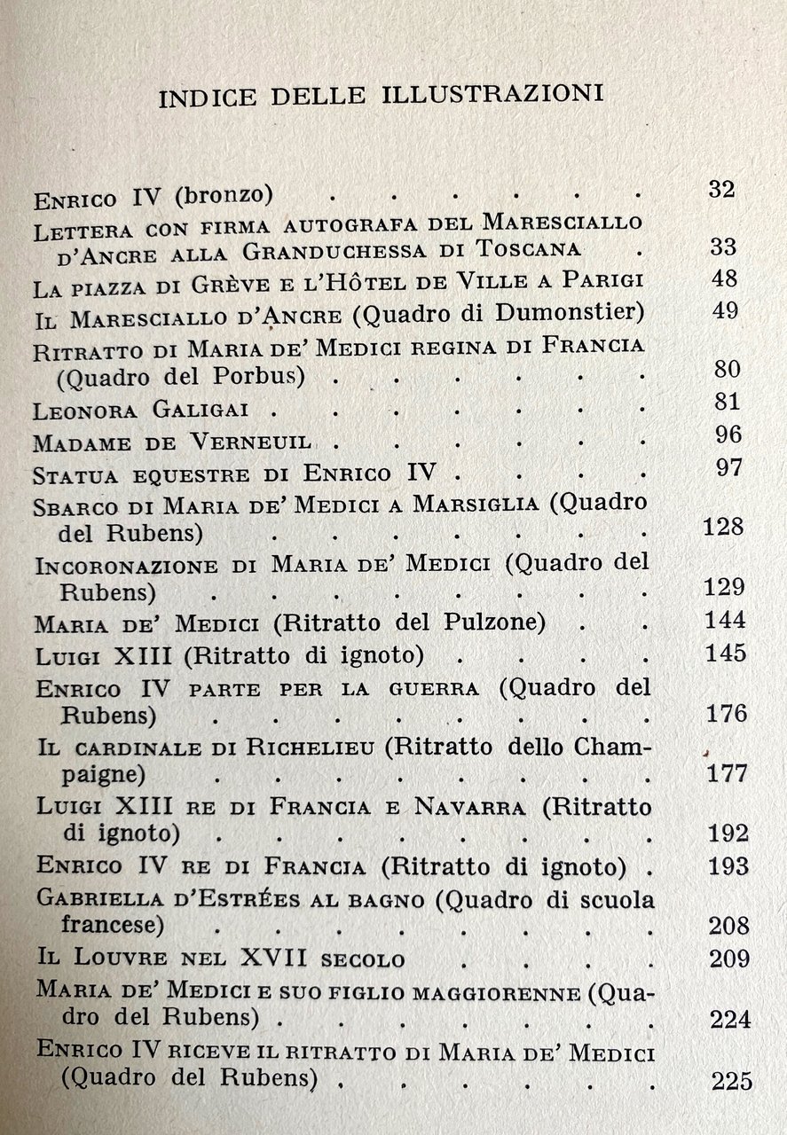 Soggetti: Collezionismo Biografie Memorie Saggi biografici storici Anni Trenta Quaranta Vintage Militaria Marescialli Aristocrazia Nobiltà Scandali Nobili Matrimonio Documenti Monarchia Stranieri Italiani Cortigiani Intrighi Amori Tradimenti Illustrati Donne Regine Famiglie Reali Assassinio Omicidio Complotti Congiure Intrigo Potere Bibliografia Riferimento BARONCELLI Don Giovanni Cosimo Dianora Bosi Archivi Manoscritti LOUIS BATTIFOL Le coup d'État 24 Avril 1617 Vie intime d'une reine de France JULES BOIS Le Satanisme et la Magie BOUCHER DE GUILLEVILLE Marquis Docteur CABANÈS Dans les coulisses de l'Histoire Albin Michel D'ALMÉRAS Maréchal DE ALBERTIS Maria de' Medici Treves DE LA FORCE L'assassinat DE VIGNY DRUMMOND juive Flammarion FUSAI Belisario Vinta Ministro Consigliere di Stato FERNAND HAYEM LA VARENDE Anne Autriche Ludovica Bande Nere Camilla Martelli Caterina Sforza città Clarice Colpo di Stato Complotto Corte Convento Diotisalvi Neroni Duca d'Urbino Duchessa Eleonora Firenze Ferdinando Fiorentini F.lli Alinari Fuorusciti Gian Gastone Bicci Giuliano Governo Granduca Granduchessa Guerra Iacopo Ippolito Lorenzo il Magnifico Lucrezia Luigi XIII Margherita Moglie Morte Nozze Orsini Palazzo Pitti Papa Picchena Piero Angelo Poliziano Popolo Principe Principessa Riario Rinaldo degli Albizi Salviati Signoria Soderini Strozzi Toscana Villa Vittoria della Rovere Concino Maître d'hôtel Premier écuyer Camera della Regina Famiglia Reale Consiglio di Reggenza Armand-Jean du Plessis Cardinale Richelieu Odio Armata francese Armeé Madre Louvre Caccia Falcone Carlo d'Albert Vitry Nicolas de L'Hospital Guardie Amicizie altolocate Blois Stregoneria Magia Esorcismi Cameriera Seicento Processo Processi Accuse Delitti Enrico IV Nantes Fieschi Interrogatorio Ostilità Romanzi storici Romanzo storico Collectibles Biographies Memoirs Historical biographical essays Thirties Forties Marshals Aristocracy Nobility Scandals Nobles Marriage Documents Monarchy Foreigners Italians Courtiers Intrigues Loves Betrayals Illustrated Women Queens Royal Families Assassination Murder Plots Conspiracies Intrigue Power Bibliography Reference Don Archives Manuscripts Minister Councilor of State Black Bands City Hunting Plot Court Convent Duchess Florence Outcasts Government Grand Duke War Lawrence the Magnificent Louis Wife Death Wedding Palace Pope People Prince Princess Lordship Tuscany Queen's Chamber Family Regency Council Bishop Hate French Army Mother Falcon Guards High-class Friendships Witchcraft Magic Exorcisms Maid Seventeenth Century Trials Accusations Crimes Henry IV Interrogation Hostility Novels