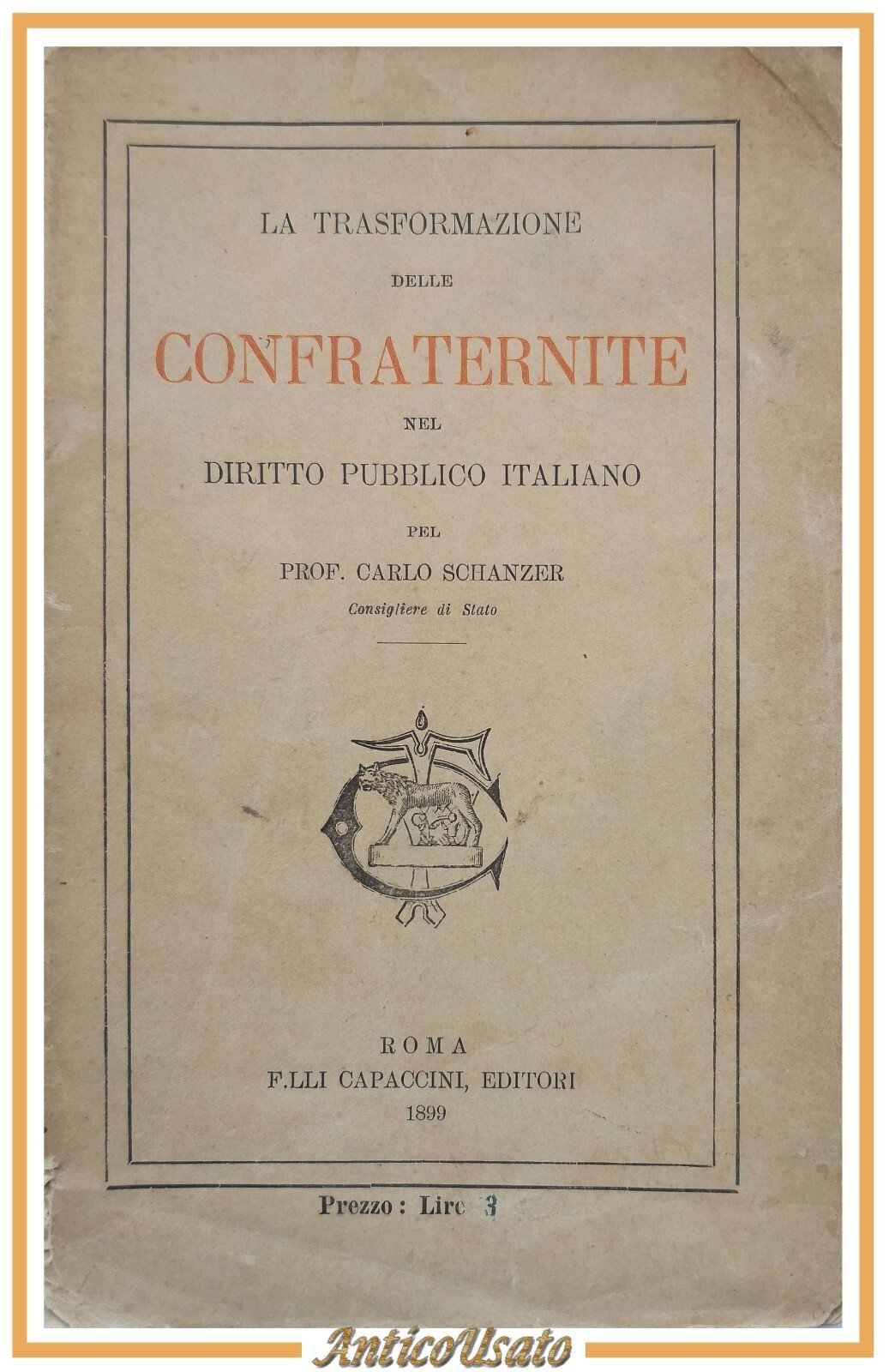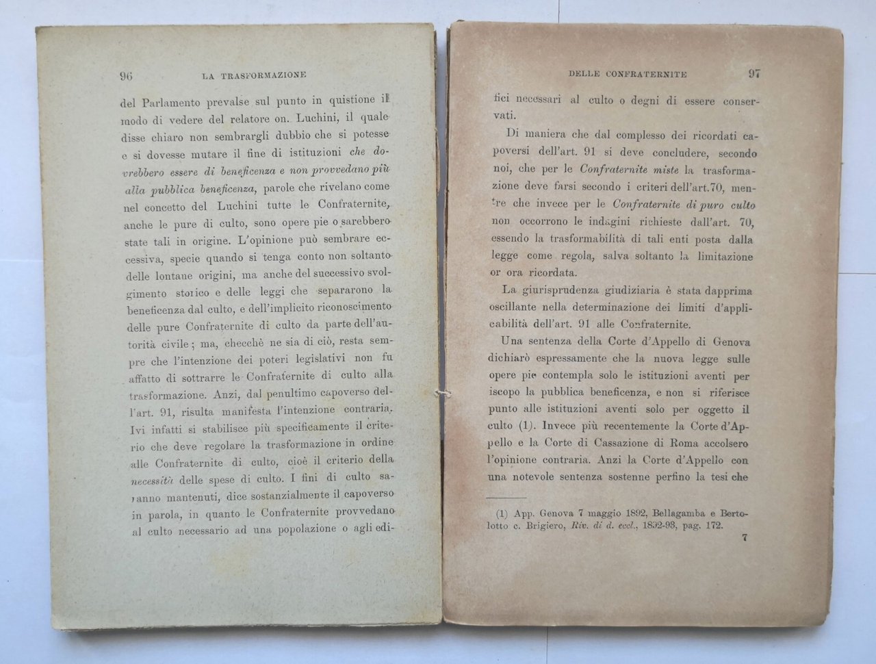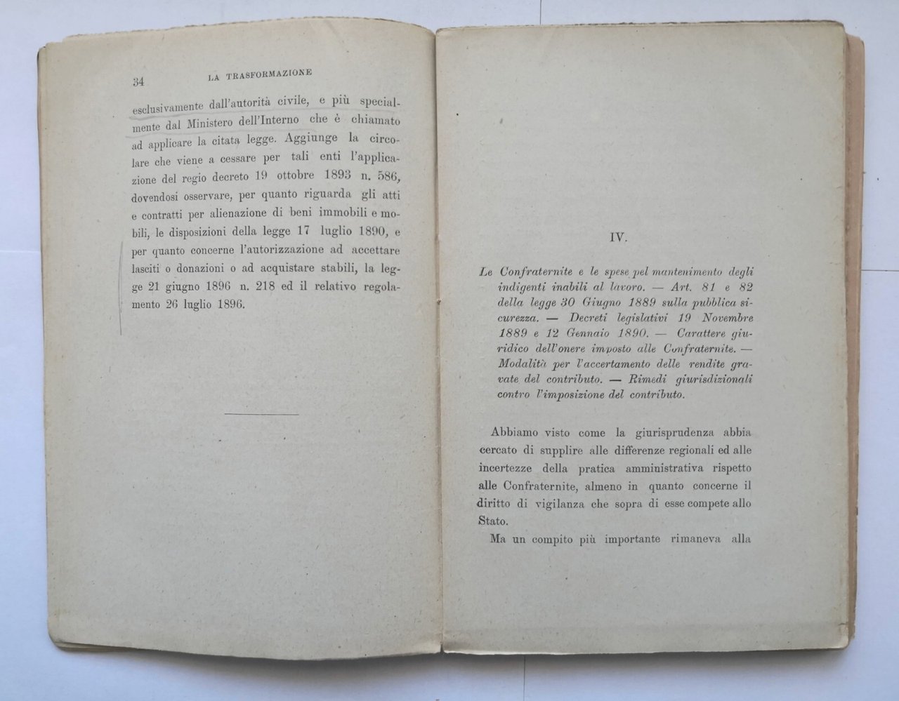 LA TRASFORMAZIONE DELLE CONFRATERNITE NEL DIRITTO PUBBLICO ITALIANO 1899 libro