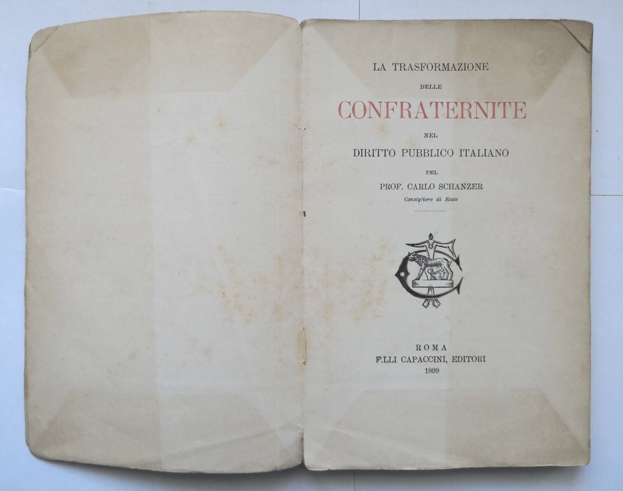 LA TRASFORMAZIONE DELLE CONFRATERNITE NEL DIRITTO PUBBLICO ITALIANO di Carlo Schanzer.