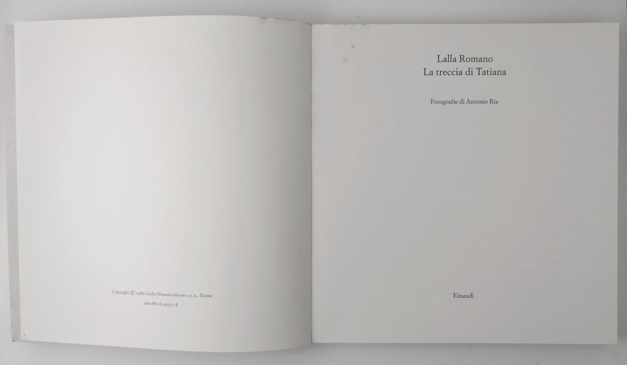 LA TRECCIA DI TATIANA Lalla Romano 1986 Einaudi Libro fotografie Antonio Ria I e
