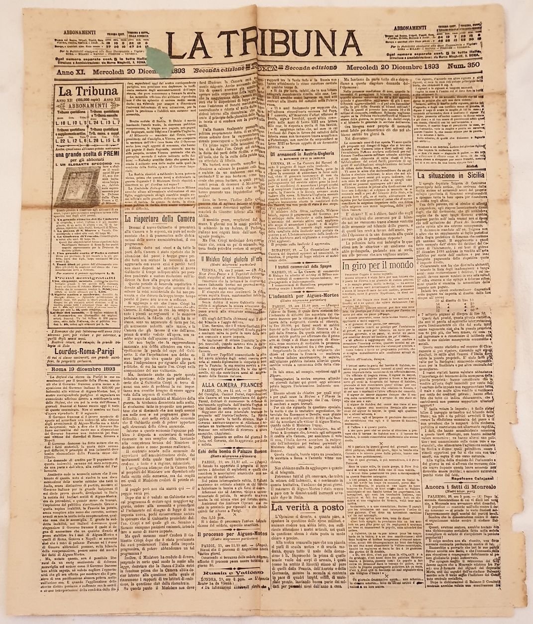 LA TRIBUNA ROMA, MERCOLEDI 20 DICEMBRE 1893 NUM. 353 SECONDA EDIZIONE