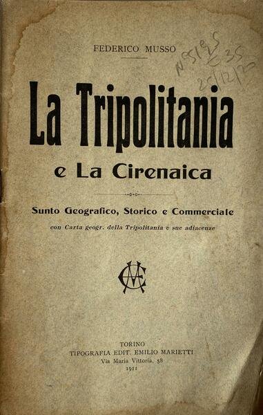 La Tripolitania e la Cirenaica. Sunto geografico, storico e commerciale con carta geografica della Tripolitania e sue adiacenze