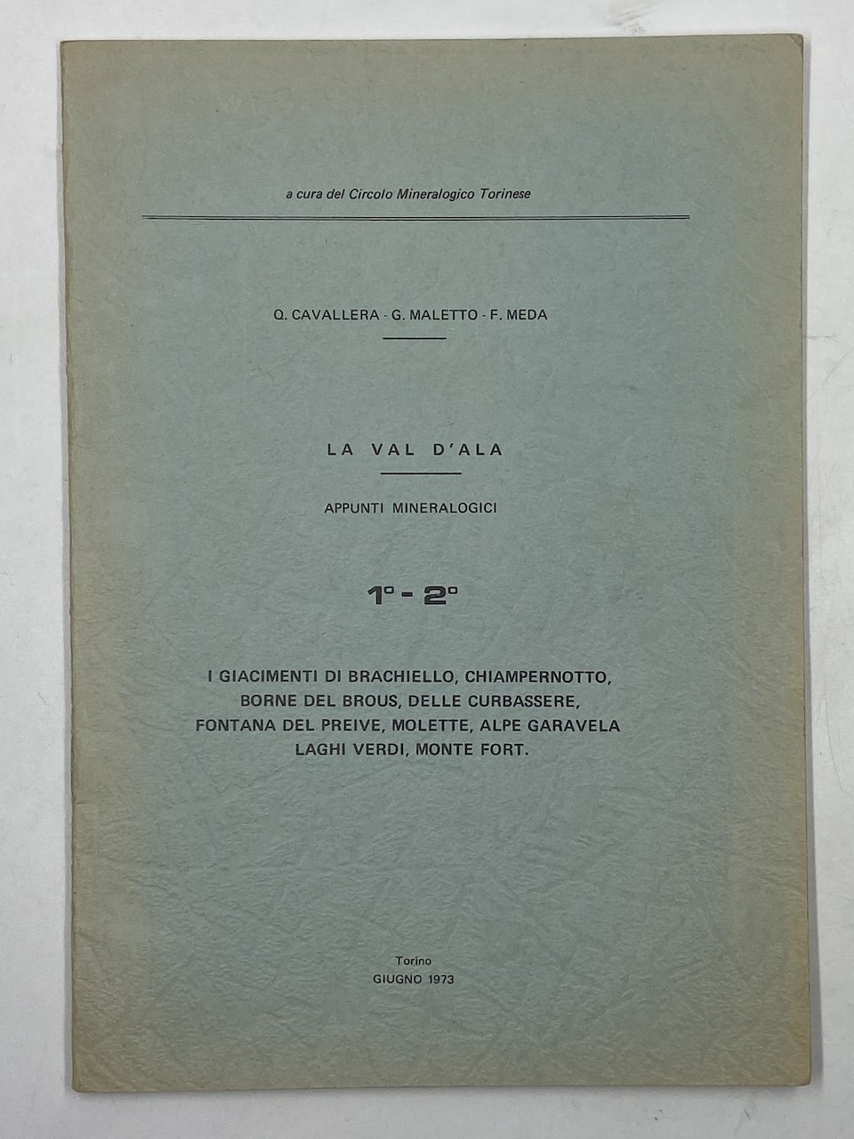 LA VAL D’ALA. APPUNTI MINERALOGICI. 1°-2° I GIACIMENTI DI BRACHELLO, CHIAMPERNOTTO, BORNE DEL BROUS, DELLE CUBASSERE, FONTANA DEL PREIVE, MOLETTE, ALPE GARAVELLA, LAGHI VERDI, MONTE FORT.