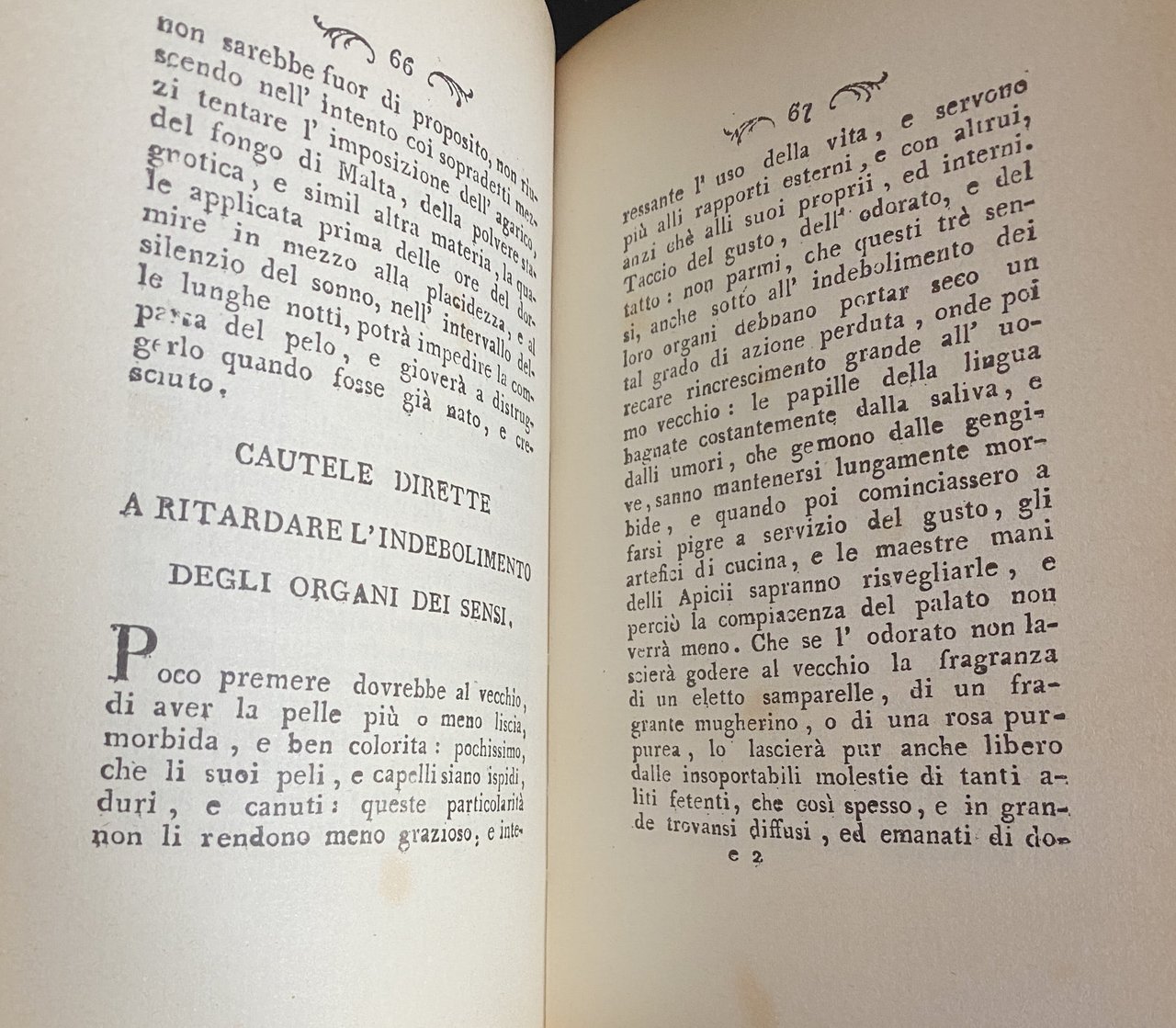 Soggetti: Libri antichi da collezione Collezionismo Medicina Trattati Gerontologia Anziani Vecchiaia Rimedi Sintomi Malattie degenerative Cure Terapie Dieta alimentare Asclepiade Avicenna Cause Cibo Cornaro Corpo Reazioni cutanee Decrepitezza Denti Digestione Disgrazia Energia Epidermide Erofilo Escrezione Età Cento Evacuazione Fibre Flusso Ventre Forza Gengive Gioventù Fegato Pancreas Indebolimento Ossa Femore Isocrate Longevi Longevità Malattia Medico Mosè Morte Organi Paracelso Respiro Salute Senile Senilità Cuore Sfintere Signor Stomaco Tremore Umori Uretra Urina Prostata Vescica Incontinenza Colesterolo Pressione Valvole cardiache Vasi Vecchio Vivere Cicerone Paolo Mantegazza Polmoni de Senectute Galeno Ippocrate Disagio Impotenza Memoria Affanni Saggezza Lucidità Esperienza Decadimento fisico Potenza muscolare Ipertensione Vista Udito Difese immunitarie Macchie Pelle Rughe Ristampe anastatiche Edizioni pregiate Collectible books Medicine Treatises Gerontology Elderly Old age Hundred Remedies Symptoms Diseases Cures Therapies Diet Causes Food Body Skin reactions Decrepitude Teeth Digestion Misfortune Energy Epidermis Herophilus Excretion Evacuation Fibers Flow Belly Strength Gums Youth Liver Weakening Bones Femur Isocrates Long-lived Longevity Disease Doctor Moses Death Organs Paracelsus Breathing Health Senility Sphincter Stomach Tremor Humors Urethra Urine Prostate Bladder Incontinence Cholesterol Pressure Heart valves Vessels Living Cicero Lungs Galen Hippocrates Discomfort Impotence Memory Worries Wisdom Lucidity Experience Physical decay Muscular power Hypertension Sight Hearing Immune defenses Spots Wrinkles Anastatic reprints Editions valuable