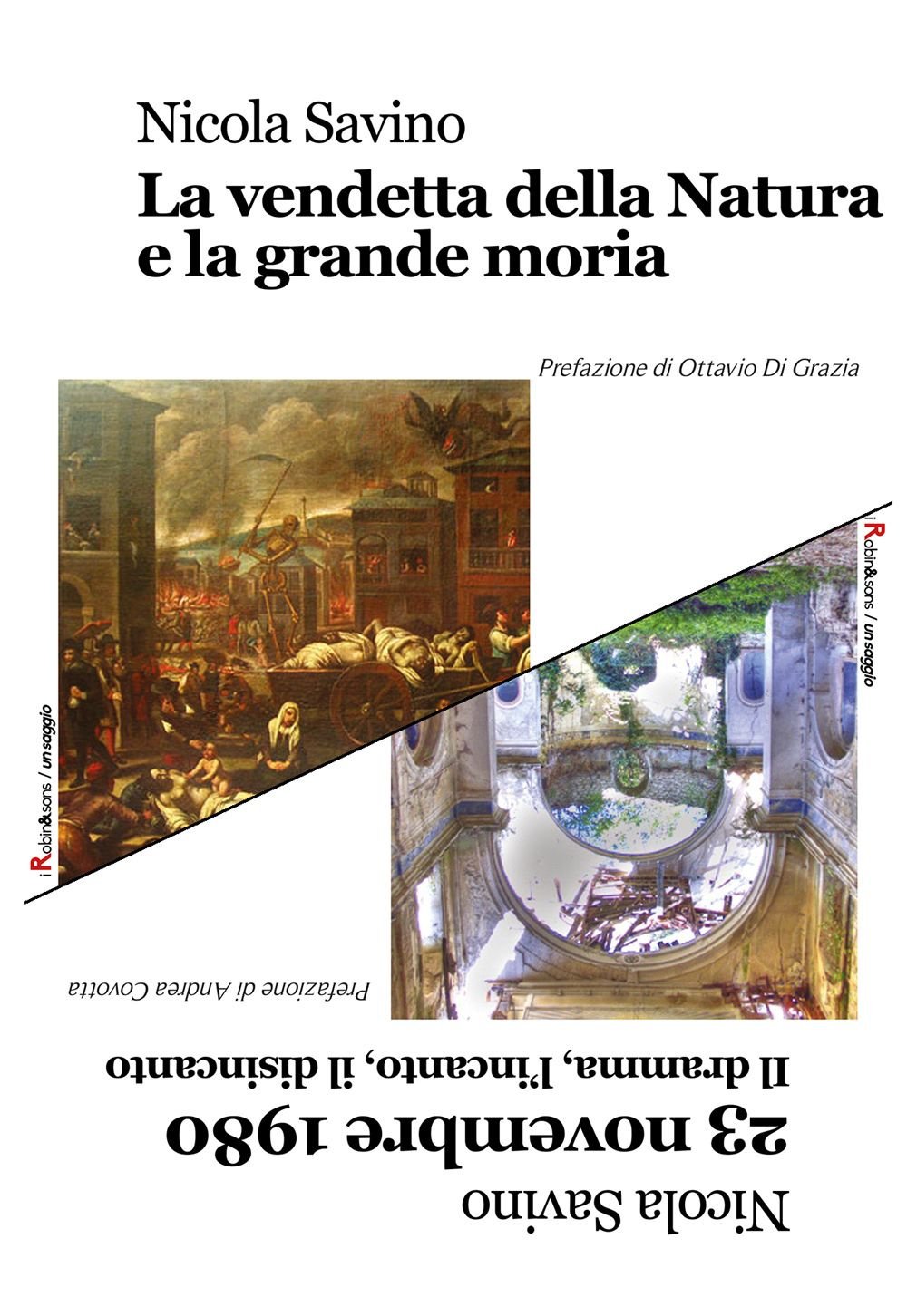 "La vendetta della natura e la grande moria", che dopo "Nacque al mondo un sole" e "La battaglia di Poitiers" chiude la trilogia "Flashback sull'Evo di Mezzo", vuole essere implicitamente, sul percorso dei drammatici eventi che caratterizzarono la prima metà del secolo decimo quarto, un monito agli uomini della nostra epoca, tesa a edificare una civiltà uniformata e globale, avida di potere e di possesso, sul rischio che la vendetta della natura, devastata e brutalizzata dall'uomo, è sempre onnipresente, col suo carico escatologico di distruzione e di morte. Erano le 19.34 del 23 novembre 1980, una domenica come tante, quando la terra sprigionò di schianto, in un minuto e mezzo, un'energia equivalente all'esplosione di un milione di tonnellate di tritolo, su un'area dell'Appennino meridionale, a cavallo tra la Campania e la Basilicata, e fu l'apocalisse.