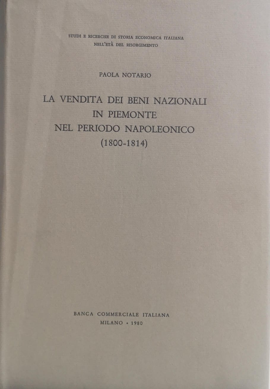 LA VENDITA DEI BENI NAZIONALI IN PIEMONTE NEL PERIODO NAPOLEONICO : 1800-1814.
