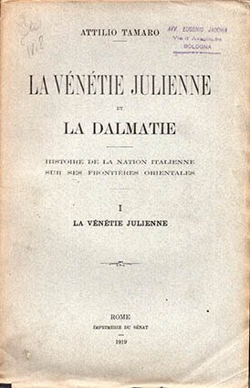 Histoire de la Nation Italienne sur ses frontières Orientales. 3 vol indivisibili,vol I La Vénétie Julienne, vol. II e III La Dalmatie. Intonsi, due carte ripiegate.