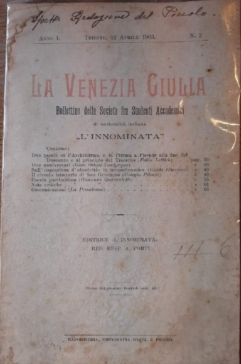 LA VENEZIA GIULIA-BOLLETTINO DELLA SOCIETA' FRA STUDENTI ACCADEMICI DI NAZIONALITA' ITALIANA(1903)