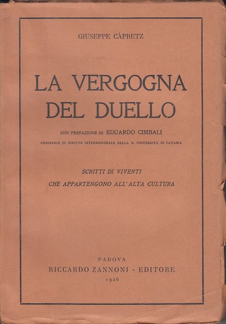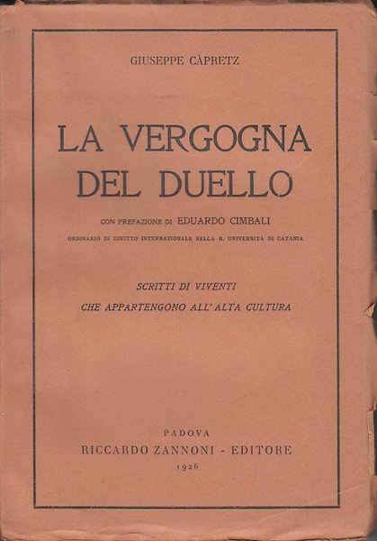 La Vergogna Del Duello Scritti Di Viventi Che Appartengono All'alta Cultura