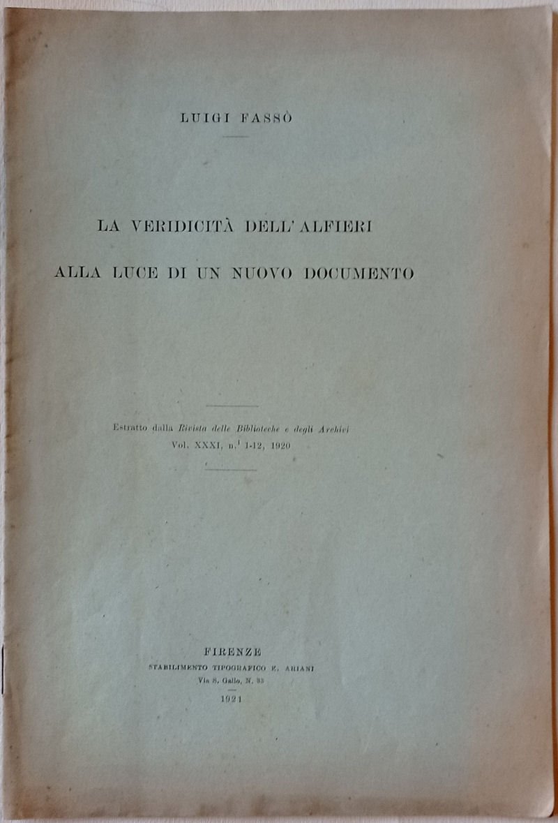 La veridicità dell'Alfieri alla luce di un nuovo documento.