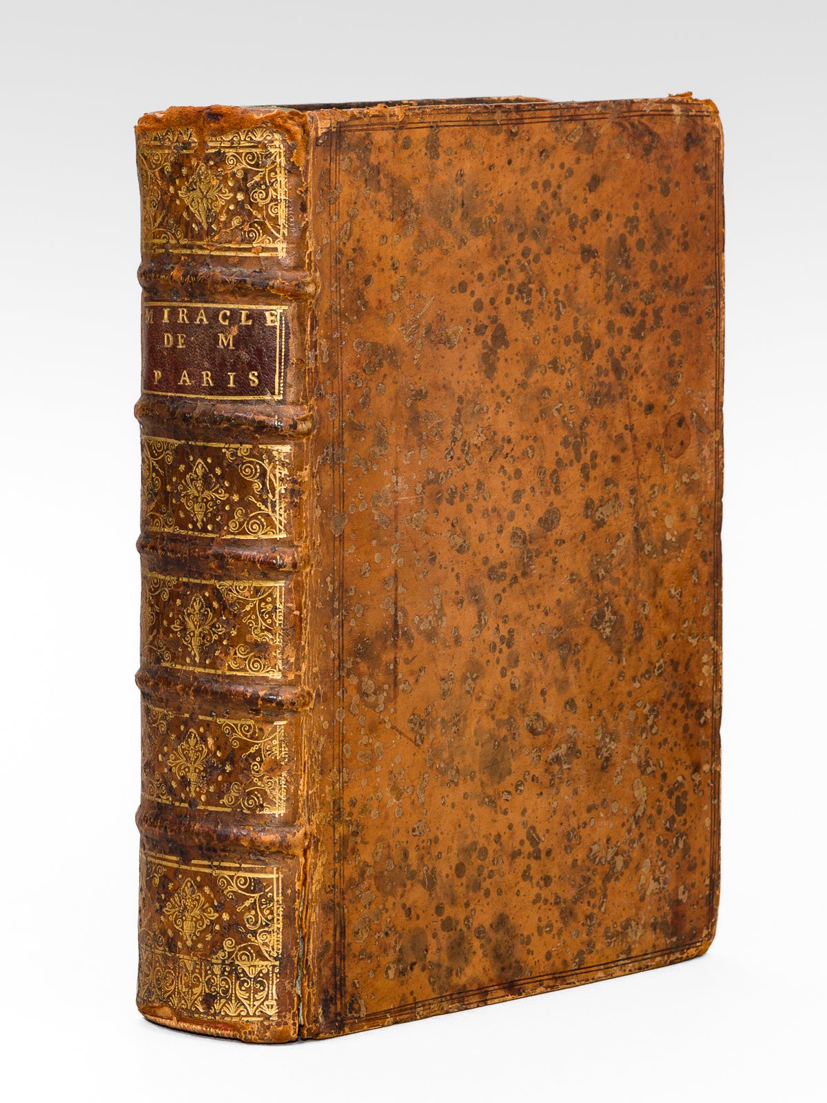 Ouvrage dédié au Roy par M. de Montgeron, Conseiller au Parlement, 1 vol. in-4 reliure de l'époque plein veau marbré, dos à 5 nerfs dorés orné, s.n., s.l., 1 f., xxij-36-5-64-39-84-46-56-34-83-65-63-34-47-24-40-18-33 pp., 1 f. blanc, 24-12-20 pp., 5 ff. blancs ; 1 f., 16 pp. ; 1 f. blanc, 4-4-91 pp. avec 20 planches hors texte (dont frontispice et une planche double) Rare exemplaire de l'édition originale de cet ouvrage curieux, bien complet des planches illustrant les miracles attribués à l'intercession du fameux diacre janséniste François de Pâris. Cette édition originale parut en juillet 1737 et sera épuisée en quinze jours (un second tome paraîtra en 1741 et un troisième en 1747). Dans cette première édition, et contrairement à la seconde édition publiée à Utrecht la même année, les planches ne sont pas signées mais on peut les attribuer à Pieter Yver d'après le peintre Jean Restout qui était en contact avec les proches de François de Pâris. L'édition est suivie de 4 autres titres de controverse, tous peu communs, relatifs au même sujet. Louis de Montgeron (1686-1754) était conseiller au Parlement de Paris depuis 1711 lorsque, "s'étant rendu au cimetière Saint-Médard pour juger par lui-même des prétendus miracles opérés sur le tombeau du diacre Pâris, il fut tellement frappé par la vue des convulsionnaires que, la veille incrédule, il se déclara subitement convaincu". Exilé avec la chambre des enquêtes en 1732, il employa ses loisirs à écrire le présent ouvrage. Le roi, à qui il présenta cet écrit, le fit mettre à la Bastille, puis transférer à Viviers, où il mourut. "Son ouvrage donna lieu à de vives controverses". Etat très satisfaisant (reliure frottée avec usures en coiffes et coins, fentes partielles en mors, bon état par ailleurs, 2 ex-libris en garde dont celui d'Emmanuel Jeanbernat Barthelemy De Ferrari Doria, notice ancienne contrecollée en garde). Larousse, GDU, XI, 509 ; Cohen, II, 734 ; Caillet, 2039