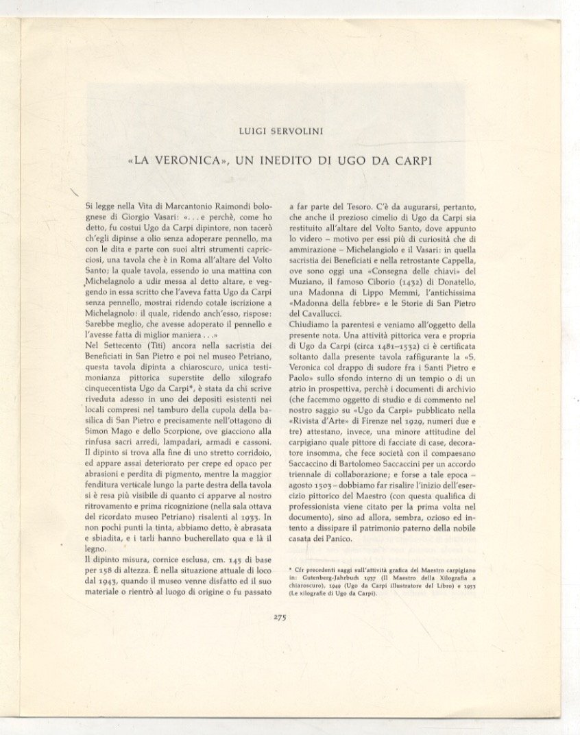 - Ugo da Carpi, Incisori del Cinquecento, Veronica, incisione, storia dell'incisione.