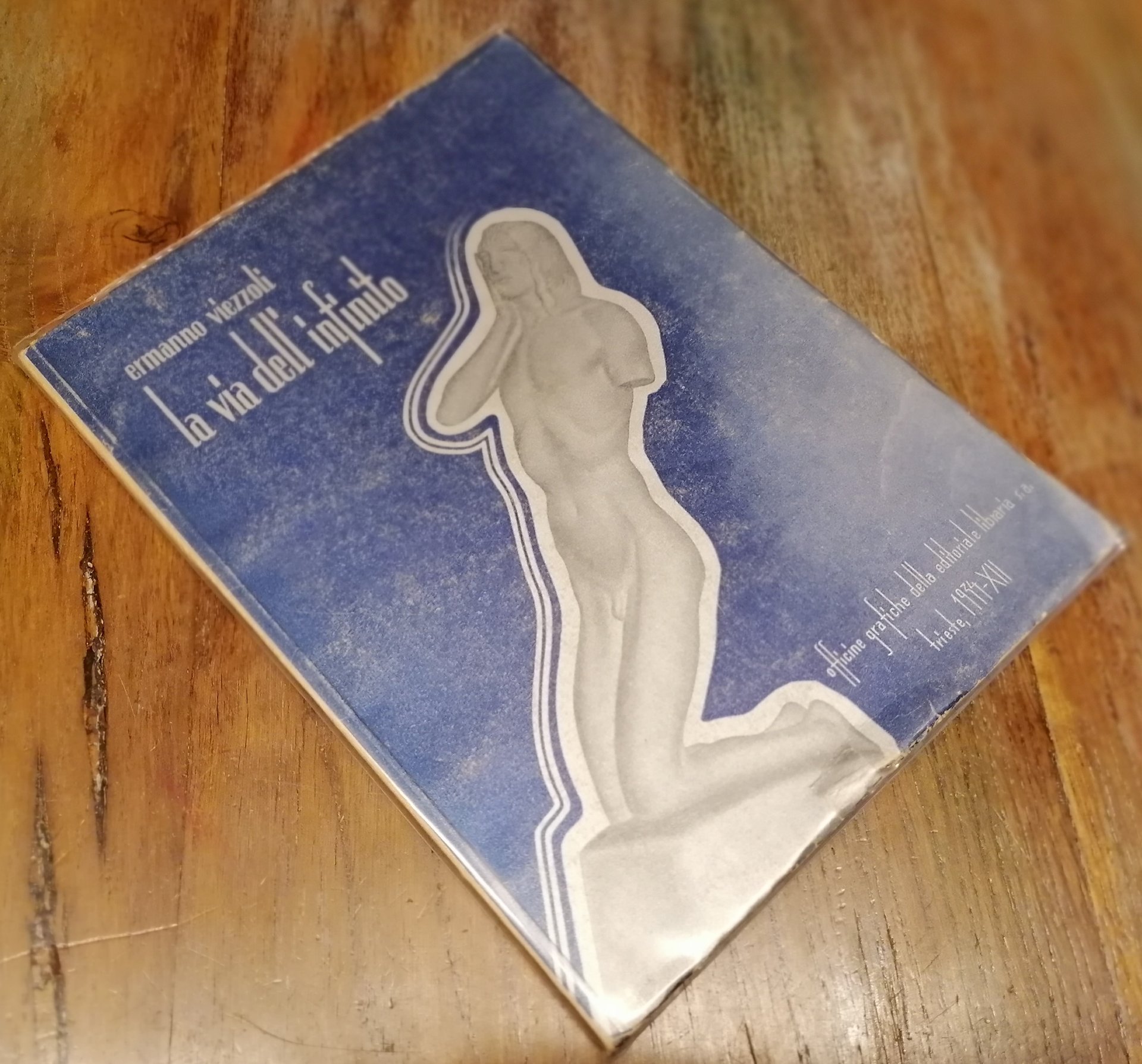 (Poesia - Novecento - Scrittori e traduttori triestini) In 8° (cm 25,5 x 19), bella brossura con illustrazione di sapore futurista al piatto anteriore (figura in grigio bordata in argento su fondo blu), pp. 66. Testo poetico impresso in nero entro cornice verde mare. Dedica autografa dell'autore al recto dell'occhiello. Volume ben conservato, stampato su carta forte.