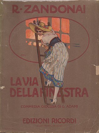 Commedia giocosa in tre atti di Giuseppe Adami. Riduzione per canto e pianoforte. Timbro a secco 7/1919. P. N. 117460. Mende al dorso