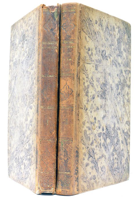 2 volumes. X. 264 pages. 1 feuillet blanc. + 294 pages. 1 feuillet blanc. (21x12 Cm). Demi-cuir. Dos lisse doré. Tranches marbrées. Coins et coiffes émoussés. Plats frottés. Rousseurs éparses. Publiée à Paris en 1791, cette édition originale offre un regard approfondi sur William Penn, illustre fondateur de la Pennsylvanie et figure emblématique de la Société des Amis, plus communément appelés Quakers. L'ouvrage, issu des presses du Cercle Social de Nicolas de Bonneville, s'inscrit dans un contexte révolutionnaire français où les idées de liberté et de démocratie sont en pleine effervescence. À travers la vie de Penn et la fondation de Philadelphie, l'auteur explore les principes fondateurs de la constitution des États-Unis, mettant en lumière les liens entre les aspirations démocratiques des deux nations. Ce texte ne se contente pas de narrer l'histoire d'un homme et de son utopie réalisée, mais sert également de miroir aux idéaux universels de liberté et de tolérance religieuse, résonnant avec les enjeux contemporains de coexistence pacifique et de gouvernance équitable.