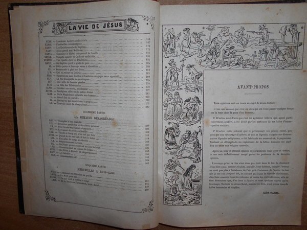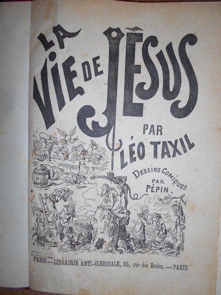 Leo, Taxil. Paris, Librairie Anti-Clericale, s.d. ma 1900. La Vie de Jésus. In-8°, m.pelle coeva, dorso a nervi con fregi e titolo in oro. (8), 389, (2) pp. con numerosi disegni comici di Pépin. Esemplare completo e ben conservato con soltanto qualche arrossatura in poche pagine. Edizione dissacrante da parte di uno dei più attivi anarchici e anticlericali francesi di inizio '900. Neg. sotto esot.