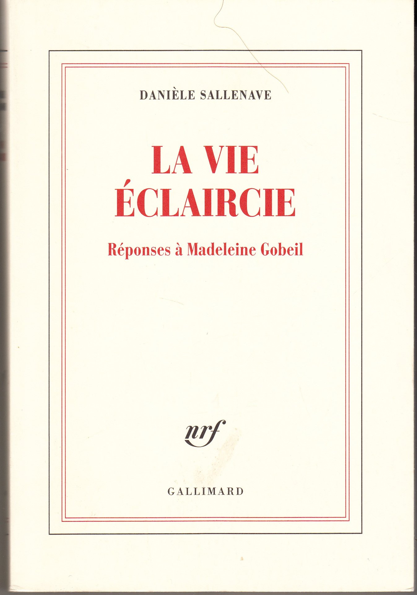 La Vie Eclaircie. Repnses a Madeleine Gobeil