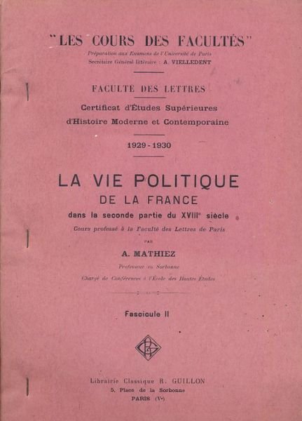 Paris Guillon vers 1930 1930 Paris Guillon vers 1930. In-4 broché. Fascicule II seul. Collection Les cours des Facultés. Bon état