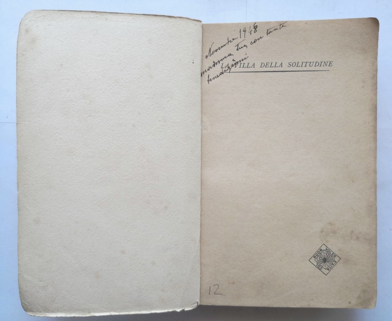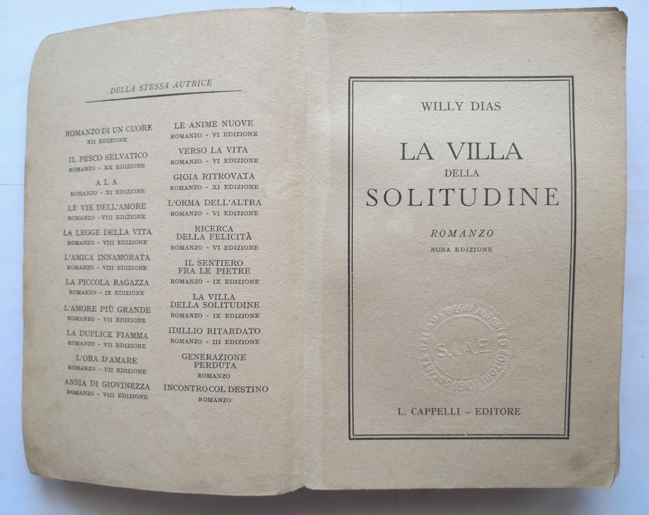 LA VILLA DELLA SOLITUDINE di Willy Dias 1948 Cappelli libro romanzo rosa