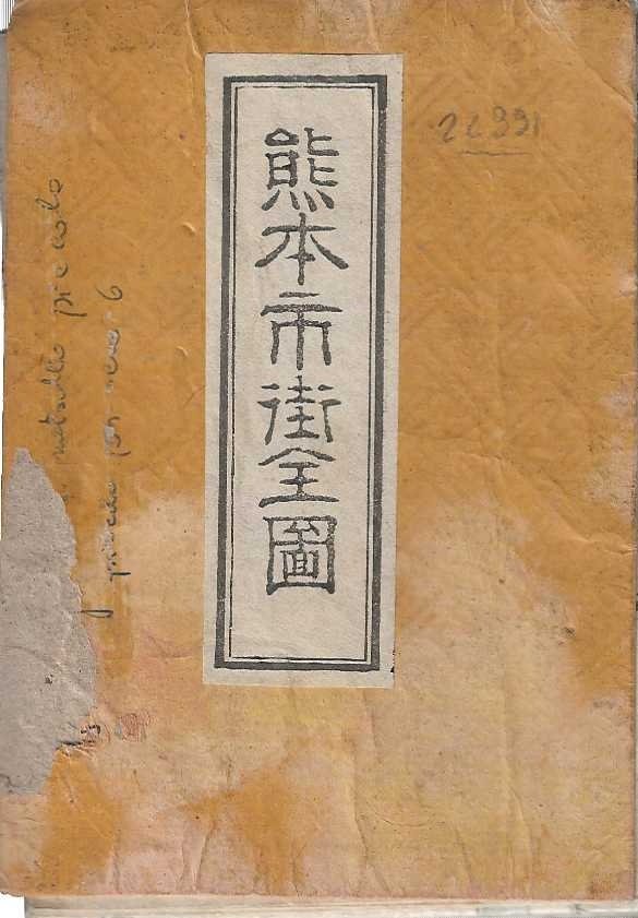 Bella carta che rappresenta la città di kumamoto, in giappone. Qualche abrasione lungo la parte di cartone della carta, e segni a matita in italiano che spiegano le didascalie. Molto rara, e molto ben conservata