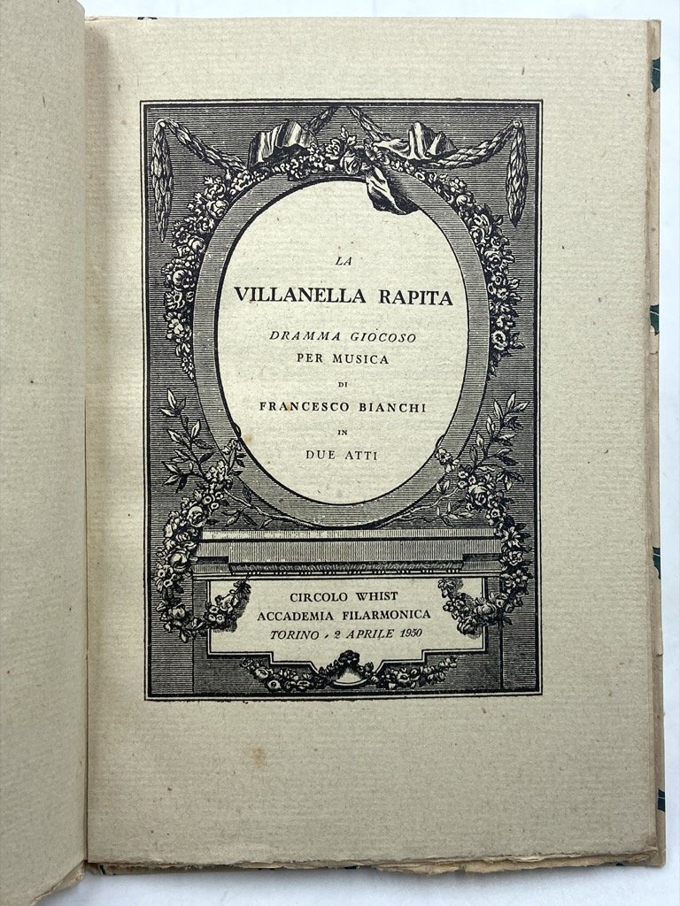LA VILLANELLA RAPITA. Dramma giocoso per musica di Francesco Bianchi in due atti. Circolo Whist, Accademia Filarmonic, Torino 2 aprile 1950.