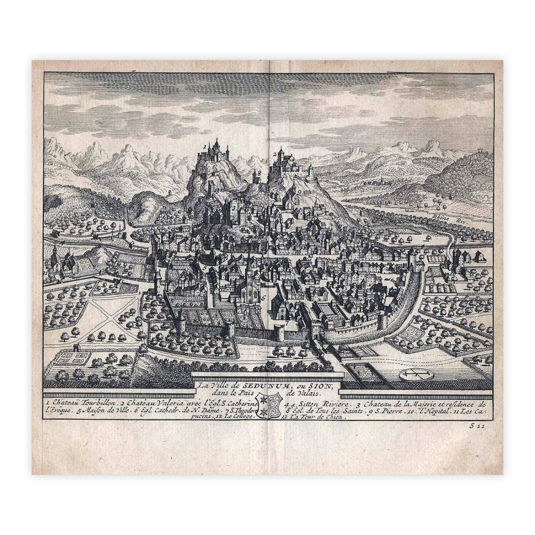 La Ville de SEDUNUM , ou SION - cm 17,5 x 15,5 Folio