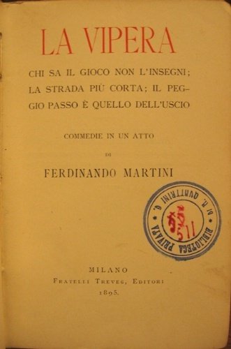 La vipera. Chi sa il gioco non l'insegni; la strada più corta; il peggio passo è quello dell'uscio. Commedie in un atto.