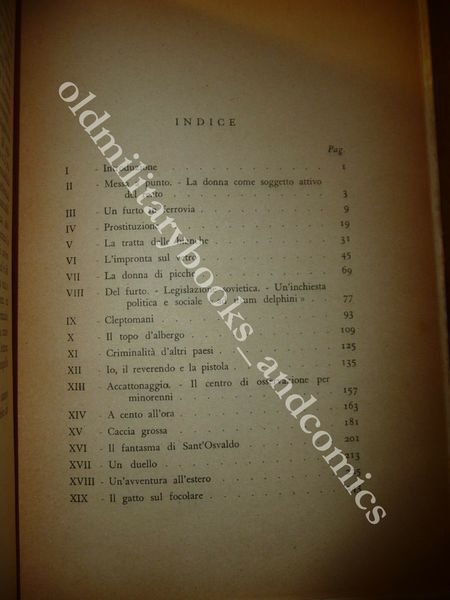DESCRIZIONE: Treves Ed. Milano, 1938 II^ Ed. br. ed. ill. pp. 272 in 8°. Seconda edizione di questo romanzo-diario nel quale l'autore tratta di alcuni casi di interesse criminale fra i quali: furto in ferrovia, prostituzione, furto, cleptomani etc. CONDIZIONI DELL'OGGETTO: Ottime. PESO/WEIGHT: 328 gr. without package