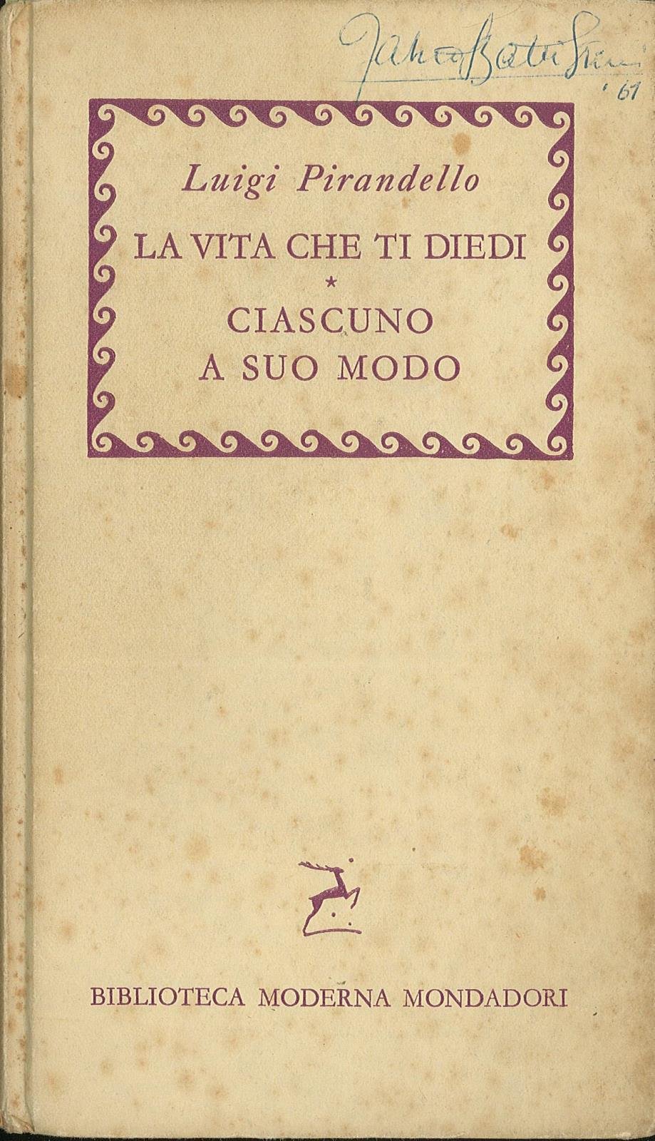 Collana "Biblioteca moderna Mondadori" 203, sezione Teatro. Seconda edizione. Usura da scaffale, fioriture all'esterno, dorso appena brunito, pagine ingiallite. Firma autografa del registra, scenografo e costumista Fabio Battistini in copertina e al frontespizio
