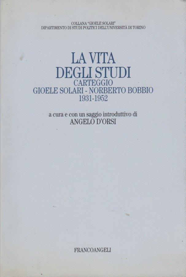 D'Orsi Angelo (A cura e con un saggio introduttivo di): La vita degli studi. Carteggio Gioele Solari, Norberto Bobbio 1931-1952. Francoangeli, 2000