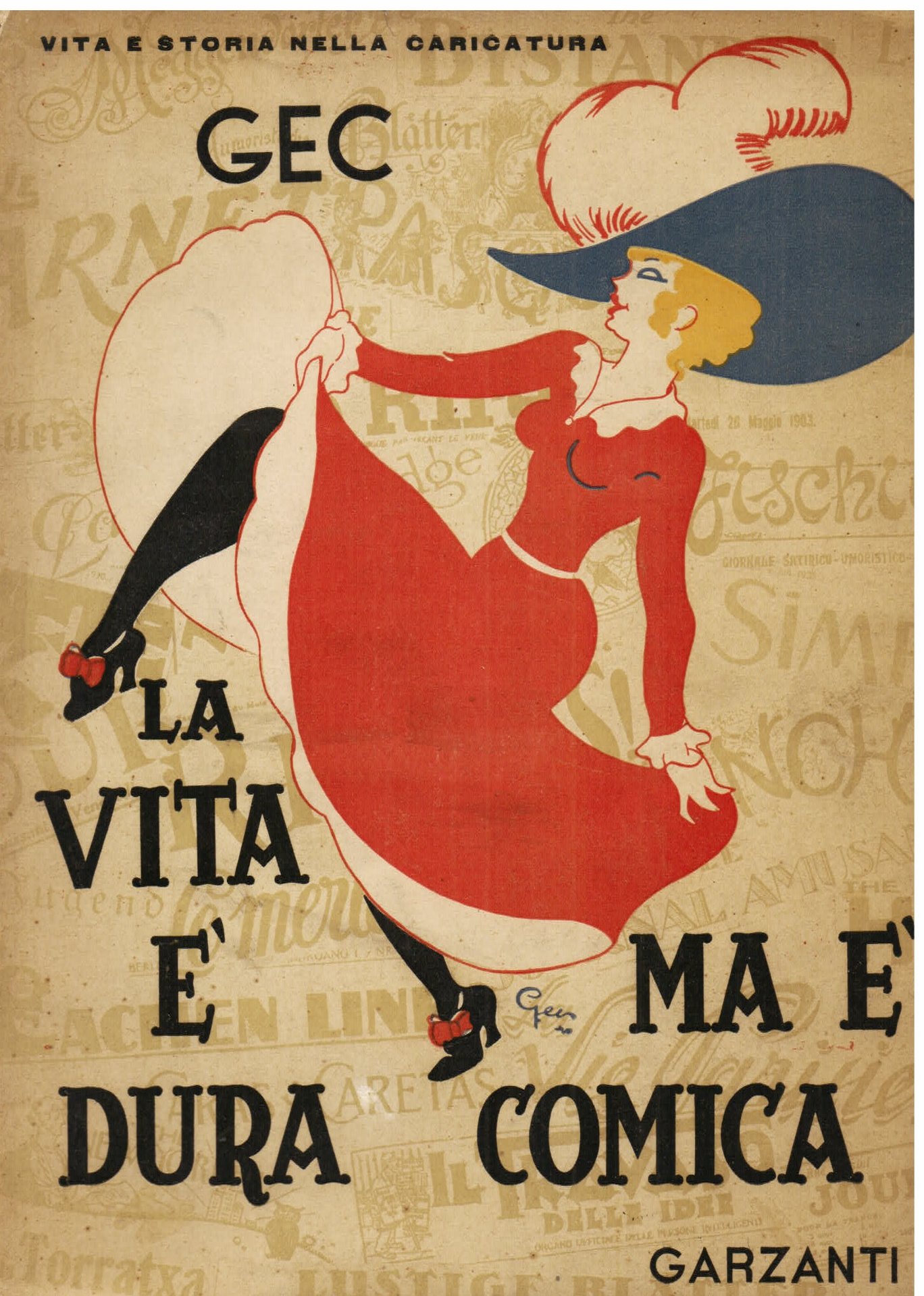 In-8°, pp. 313, bella brossura editoriale a risvolti illustrata a colori dallo stesso Gec con l'immagine di una dama della Belle Époque abbigliata con un grande cappello piumato e intenta a ballare il can can. Sullo sfondo dell'illustrazione sono riprodotte le testate dei principali giornali satirici del tempo. 8 tavole a colori f.t. e 512 illustrazioni b.n. n.t. bell'esemplare. Edizione originale. Le centinaia di caricature riprodotte, dovute ad artisti come Gus Bofa, Bompard, Cappiello, Caran d'Ache, Carlin, Fabiano, Faivre, Finozzi, Forain, Galanis, Golia, Guillaume, Jeanniot, Manca, Metivet, Nasica, H. Paul, Scarpelli, Sto, Teja, Villemot, Valloton, ecc., concernono i principali avvenimenti della società e del costume nel periodo intercorso tra il 1890 e il 1915: la Belle Époque, la presenza coloniale italiana in Africa, la Guerra Anglo-Boera, l'affare Dreyfus, la nascita dell'aeroplano, l'automobile, la bicicletta, i capricci della mdoa, la voga dei bagni, dal Romanticismo al Futurismo, ecc. Il volume viene così a formare un pittoresco album della Belle Époque colta nelle sue connotazioni culturali e sociali, nel suo rigoglio culturale come nei suoi eccessi e nelle sue mode effimere. Gec, pseudonimo di Enrico Gianeri (Firenze, 1900-Torino, 1989), avvocato, giornalista, caricaturista e vignettista satirico, fu anche studioso della storia della caricatura e della grafica umoristico-satirica. A soli 23 anni venne chiamato a Torino per dirigere il Pasquino, in cui rimase fino al 1930, anno in cui la testata venne chiusa per ordine della vigente pubblica autorità. Diresse anche il Codino Rosso e altre testate umoristiche minori. Nel dopoguerra tornò a dirigere il Pasquino, fino al compimento del centenario della storica testata, nel 1956. La sua collezione di pubblicazione umoristiche, di circa 1.500 testate, dopo la sua morte venne acquisita dall'Archivio Storico del Comune di Torino.