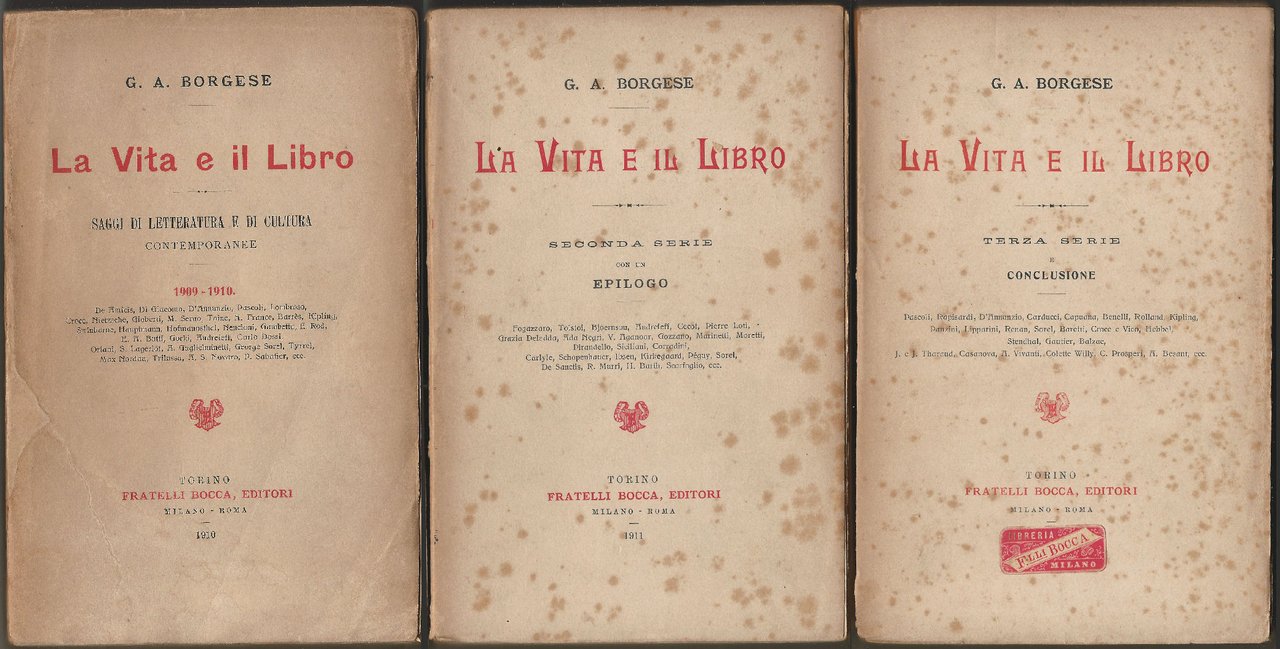 La vita ed il libro. Saggi di letteratura e di culture contemporanee. 1909 - 1910. [Seconda serie con un Epilogo]. [Terza serie e conclusione].
