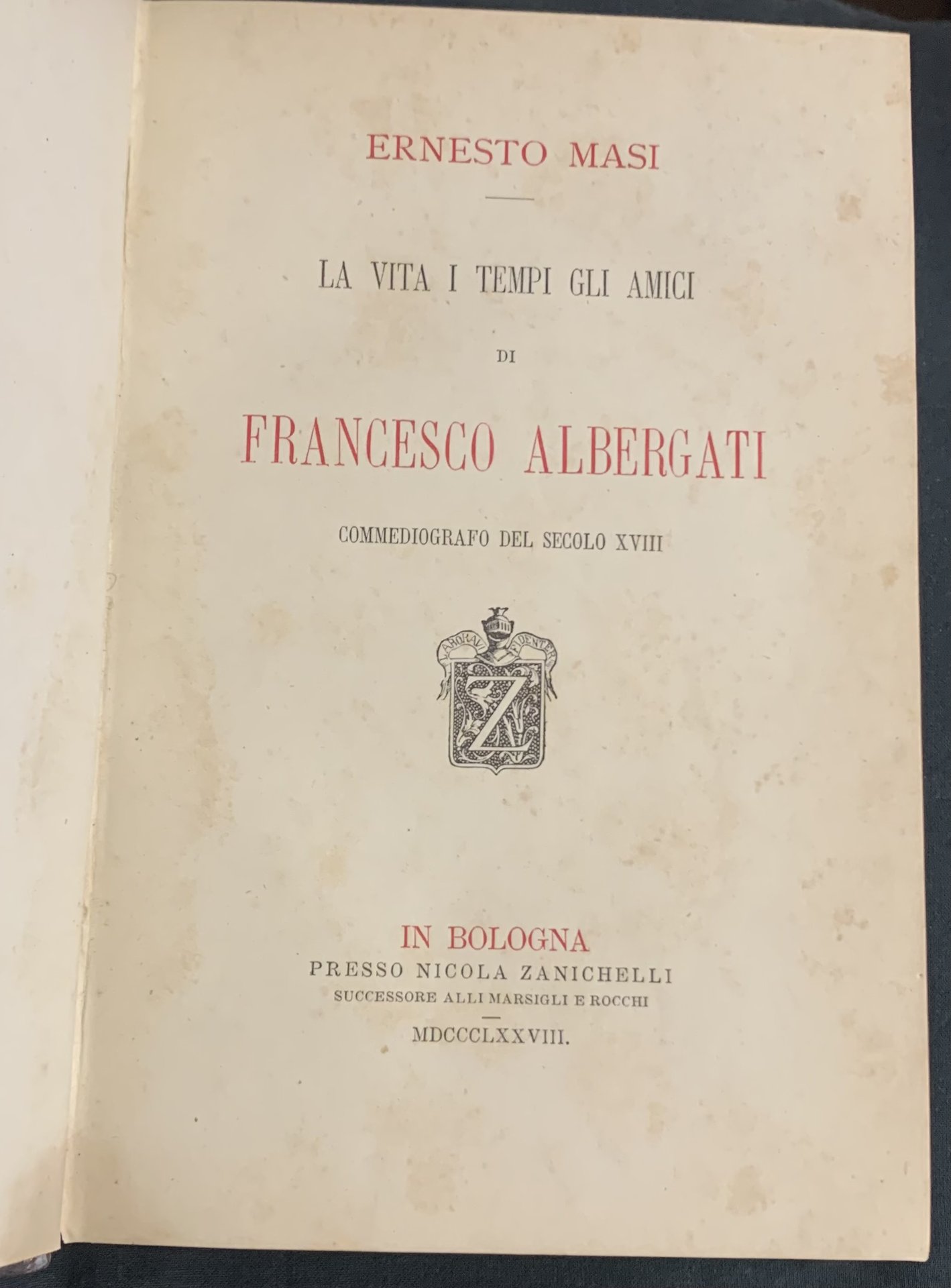 LA VITA, I TEMPI, GLI AMICI DI FRANCESCO ALBERGATI; COMMEDIOGRAFO DEL SECOLO XVIII.
