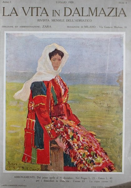 Milano,1920.In 8¡,38 pp.Legatura editoriale; fascicolo in buone condizioni con copertina recante la rappresentazione di un quadro di Cantinotti.Rivista mensile dell'Adriatico,con illustrazioni in b/n e pubblicit di attivit commerciali.
