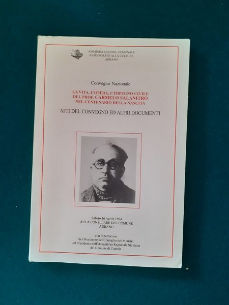 LA VITA, L'OPERA E L'IMPEGNO CIVILE DEL PROF. CARMELO SALANITRO NEL CENTENARIO DELLA NASCITA ATTI DEL CONVEGNO ED ALTRI DOCUMENTI 16 APRILE 1994