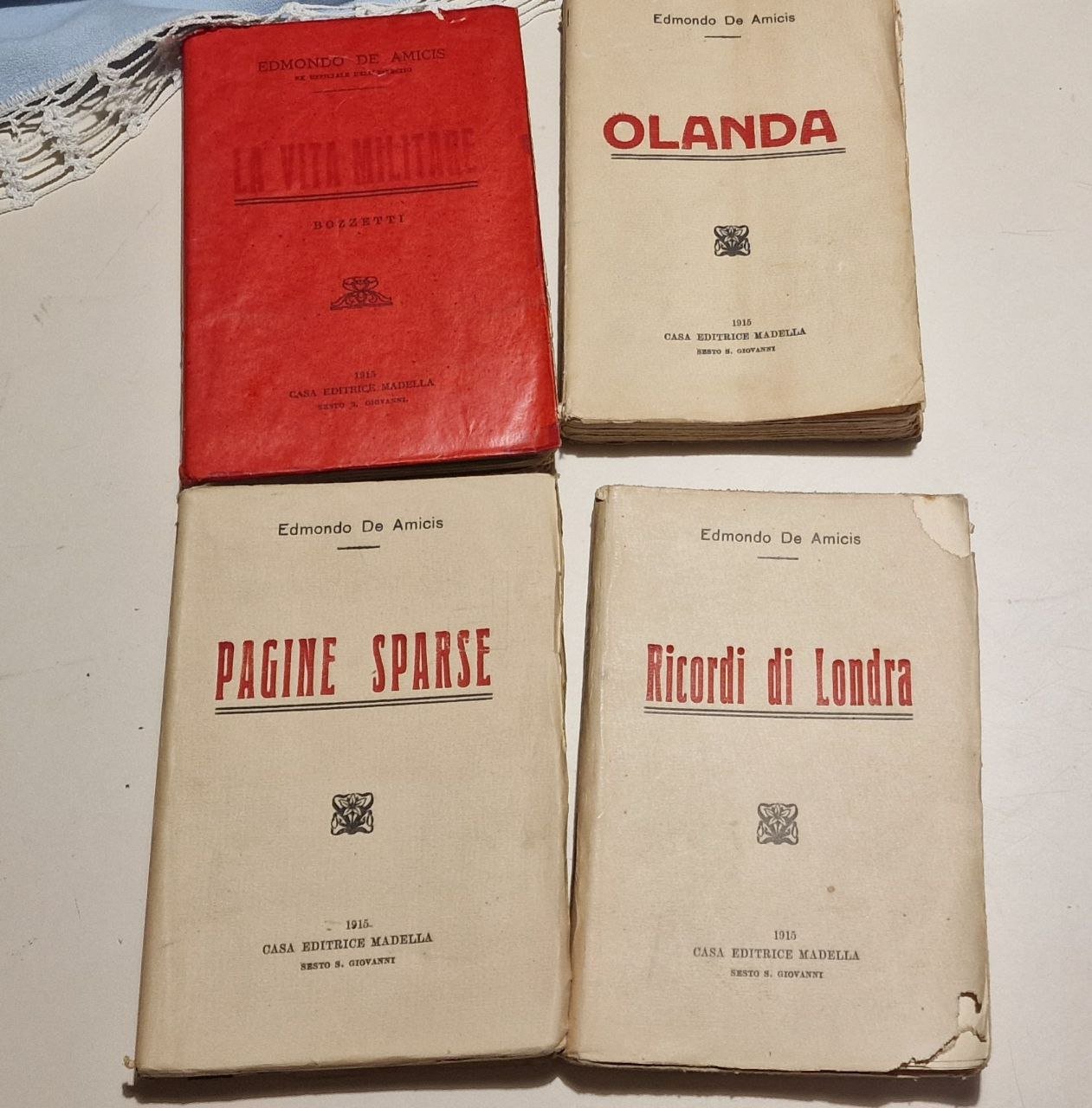 LOTTO 4 VOLUMI DI EDMONDO DE AMICIS IL PREZZO NATURALMENTE ? PER L'INTERO LOTTO MA POSSO VENDERE ANCHE I VOLUMI SINGOLARMENTE, IN QUESTO CASO OGNI VOLUME HA IL SUO PREZZO UNO DEI VOLUMI HA UNA PELLICOLA PROTETTIVA ROSSA COME DA FOTO NATURALMENTE REMOVIBILE