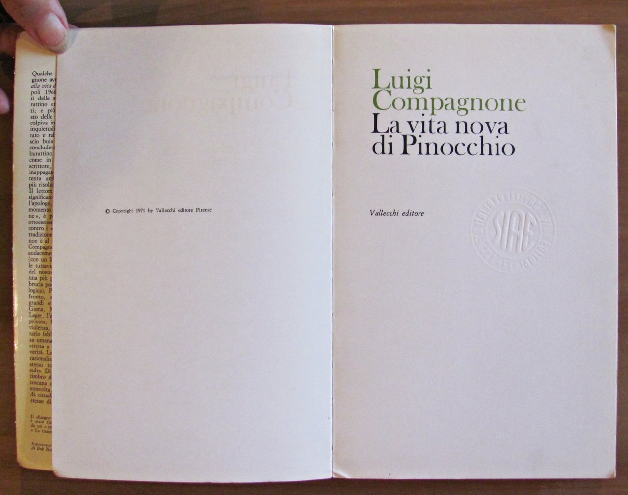 LA VITA NOVA DI PINOCCHIO - Collana Narratori Vallecchi N.62