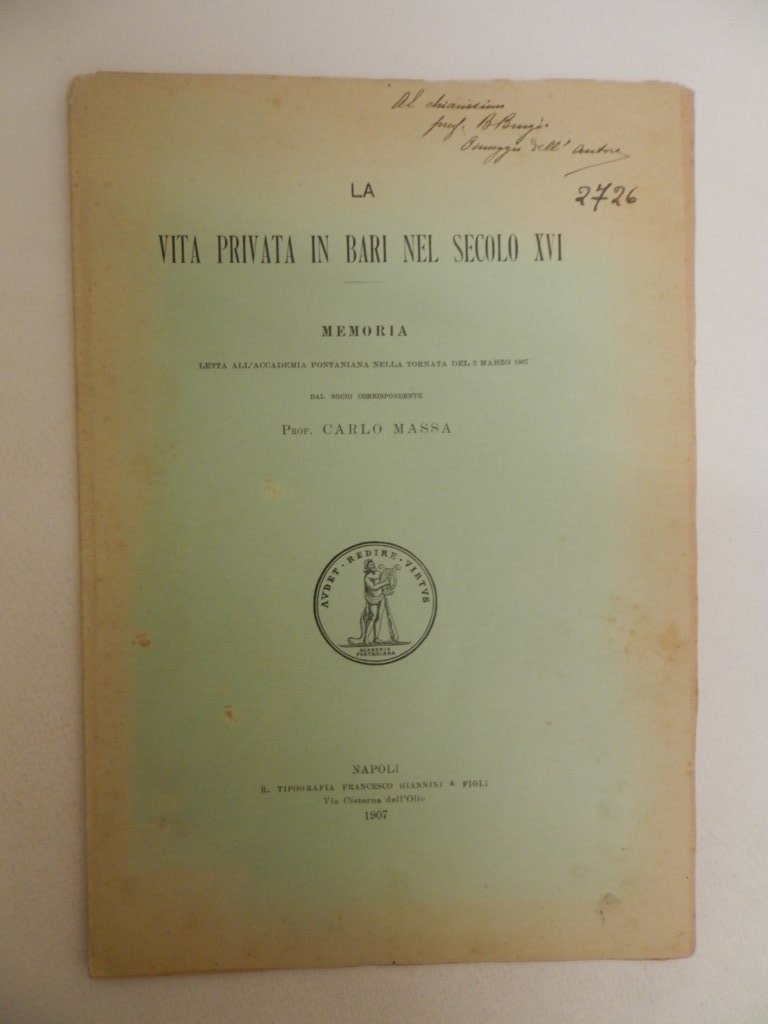 La vita privata in Bari nel secolo XVI. Memoria letta all'accademia pontaniana