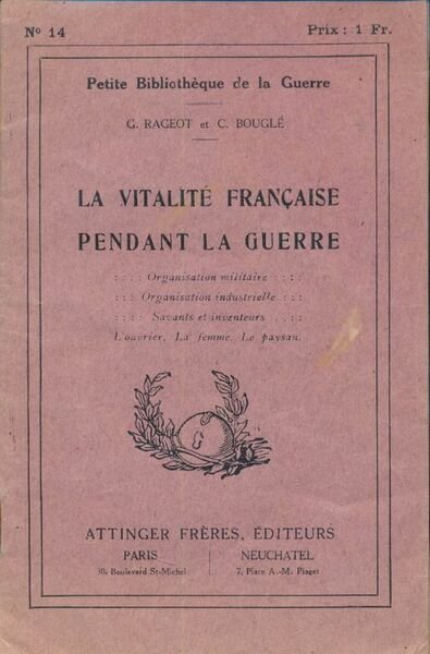 La vitalité française pendant la guerre. Organisation militaire - Organisation industrielle - Savants et inventeurs. L'ouvrier. La femme. Le paysan
