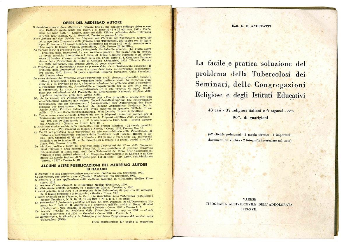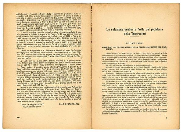 La vittoria definitiva sulla tubercolosi. Estratto: Capitolo decimo. "La facile e pratica soluzione del problema della Tubercolosi, dei Seminari, delle Congregazioni Religiose e degli Istituti Educativi"