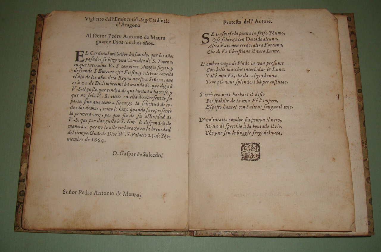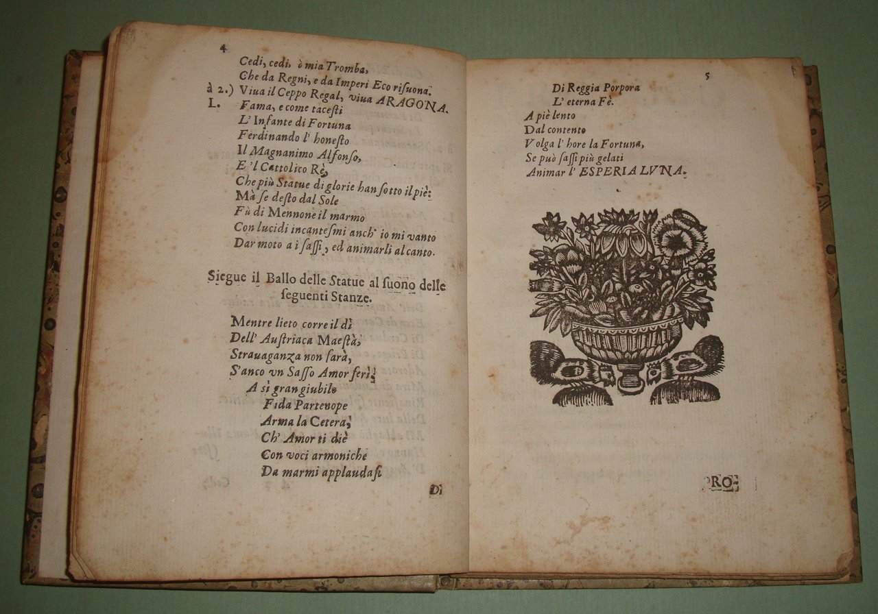 (Napoli, 1664 ?). In 8vo; cc.4n.nn., pp.215, 2n.nn. Frontespizio illustrato inciso da Baldasar Soldi. Cart. posteriore, tassello al dorso con titolo in oro. Brunit. Cat. Of 17th Century Italian Books in the British Library I, pag.200: “No more published ?”. Edizione rara.
